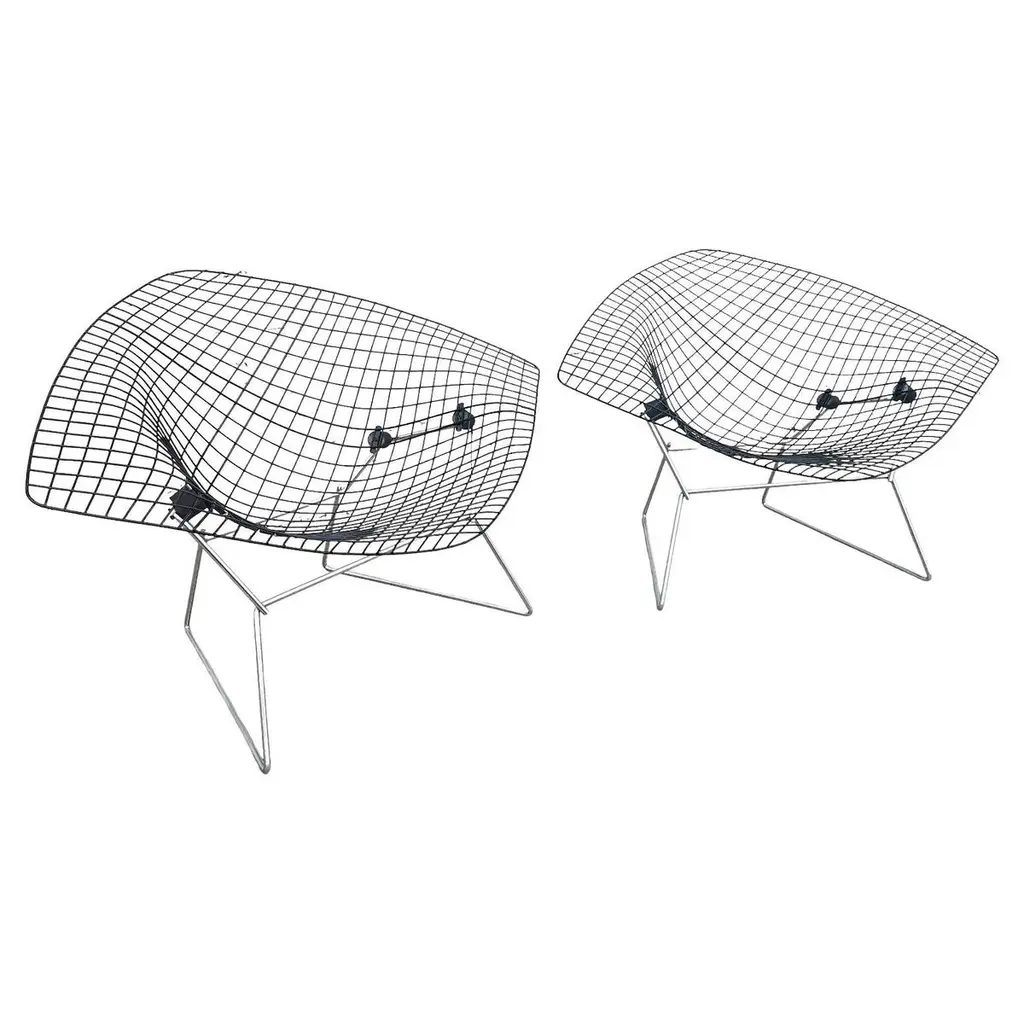 Rare Bertoia Diamond Chairs With Ottoman For Knoll International, 1970s