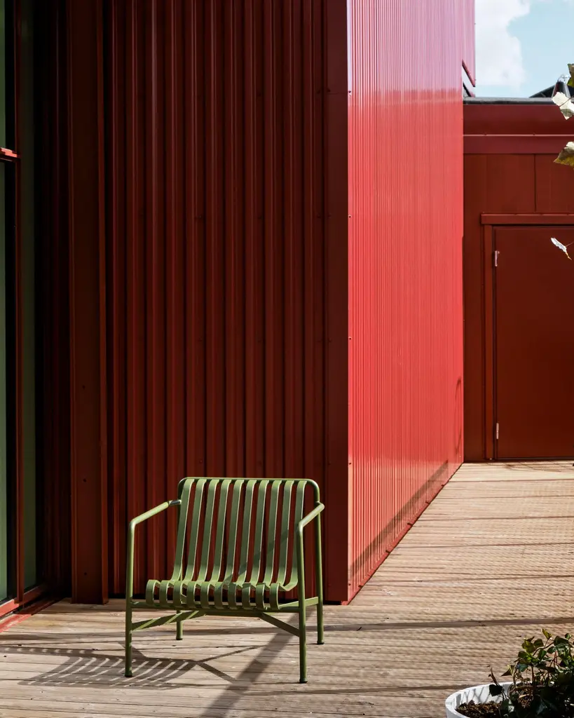 Designed by French brothers Ronan and Erwan Bouroullec, Palissade is a collection of outdoor furniture for HAY in powder coated or hot galvanized steel.United by a common principle of symmetrical geometry, the Palissade collection is engineered to reproduce the same visual simplicity and core strength throughout. Designed in color and form to integrate effortlessly into a natural landscape or urban setting, Palissade is intended to be used over a longer period of time and become more beautiful over the years. The collection is suited to a wide variety of environments, from cafés and restaurants to gardens, terraces and balconies.Material : Powder Coated Steel Color : Olive Powder CoatedDimensions : Lounge Chair - Low : H70 X W73 X L81 cm, Seat H : 38 cm Ottoman: H37 X W65 X L60 cm.DesignerRonan & Erwan Bouroullec the Paris-based design brothers from Brittany have been working together since 1998. Ronan is a graduate of the École Supérieure des Arts Décoratifs in Paris and Erwan attended the École Nationale Supérieure des Arts in Cergy before starting their own studio.They have transformed the design industry and offered new perspectives of materiality and purpose. For HAY, they have designed the Palissade Collection, Palissade Cord Collection, Balcony Collection, CPH Collection, Can Collection, Passerelle Collection, Élémentaire Chair and Pier System.