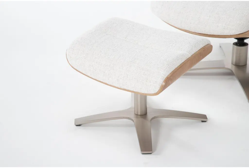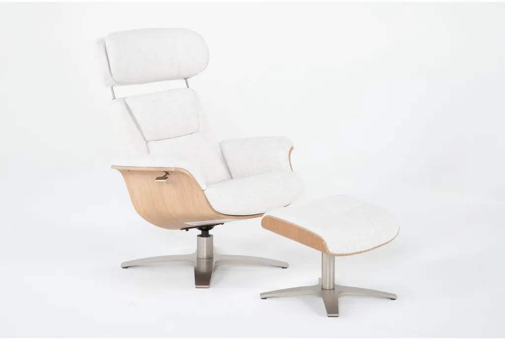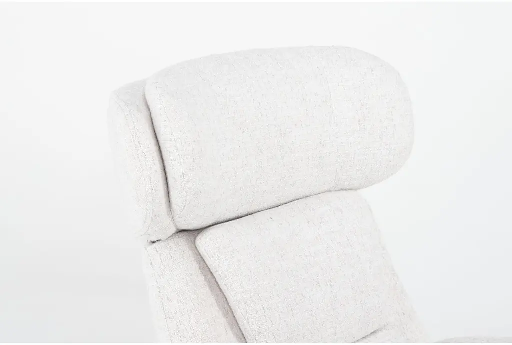 Solana White Fabric Wheat Reclining Swivel Arm Chair With Adjustable Headrest & Ottoman | Adjustable Headrests