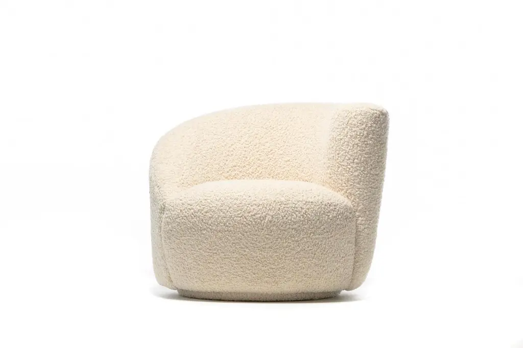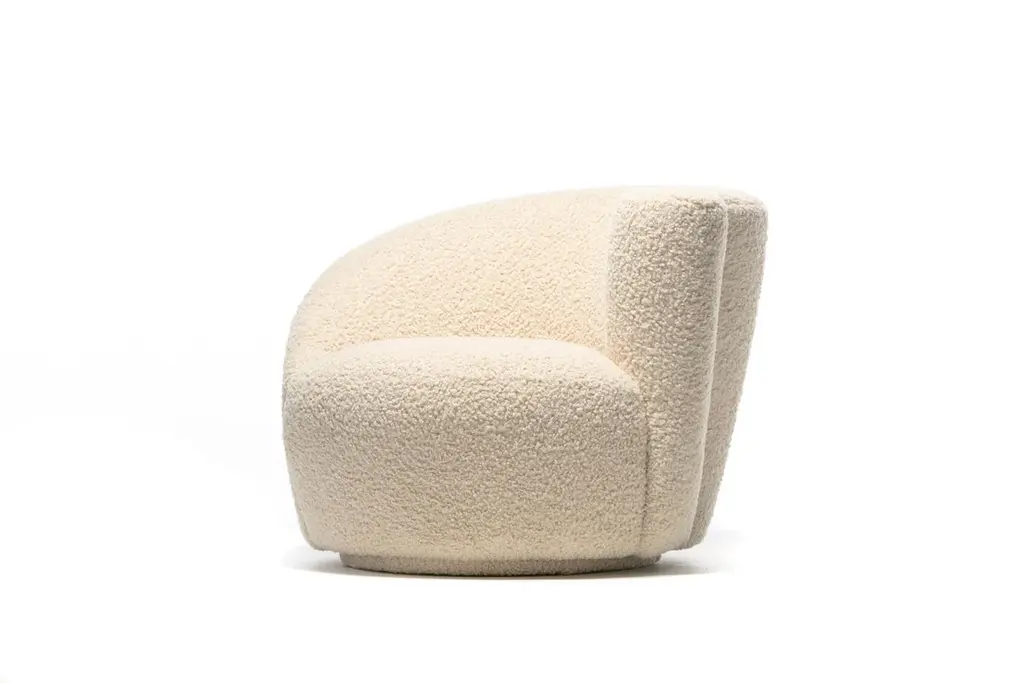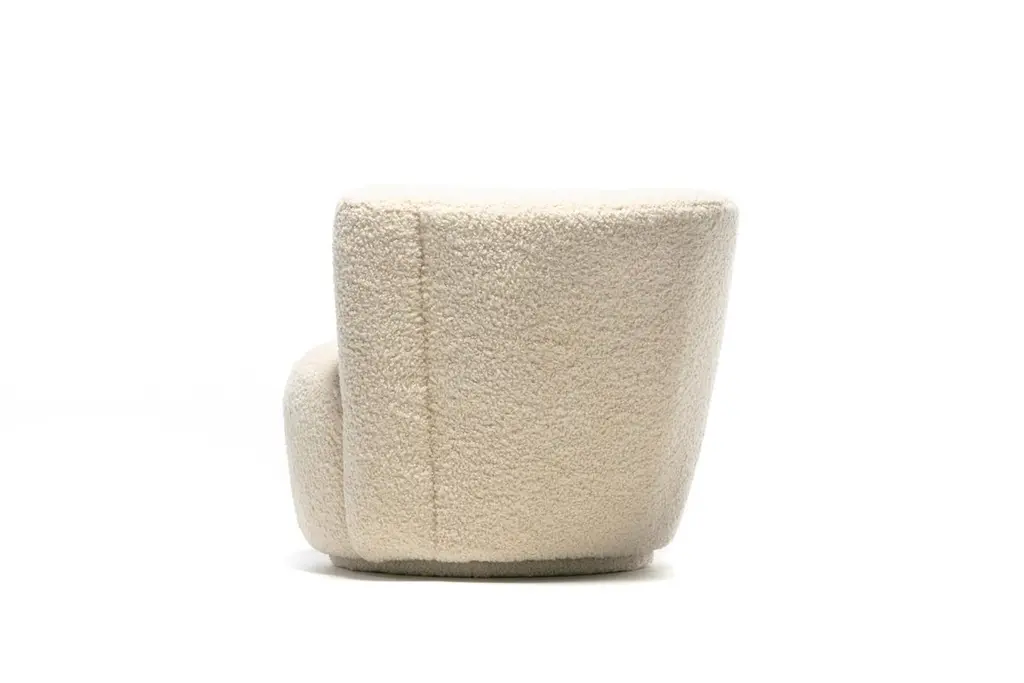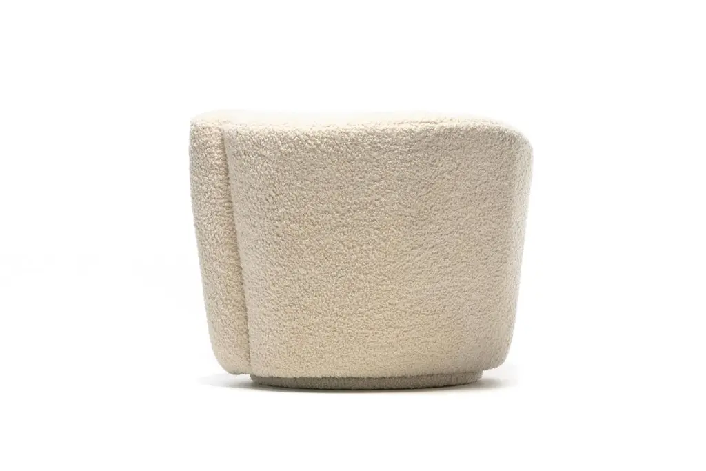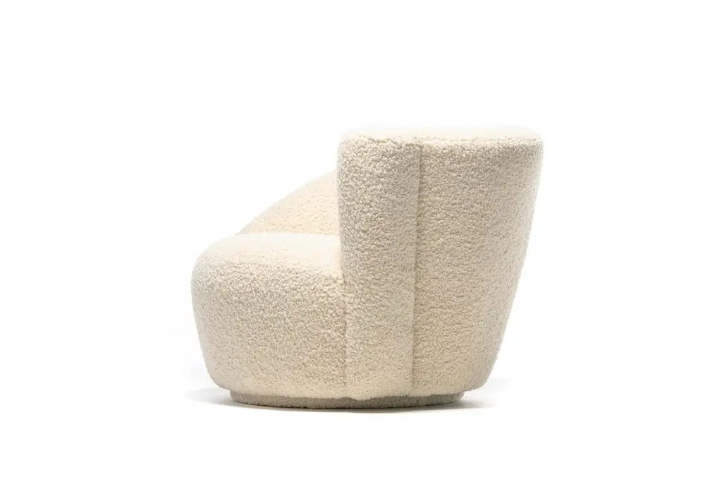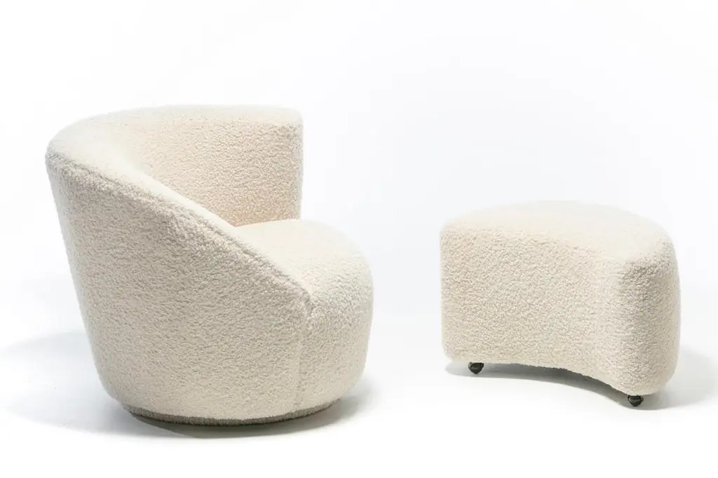 Vladimir Kagan Nautilus Swivel Chair With En Suite Ottoman In Ivory Bouclé