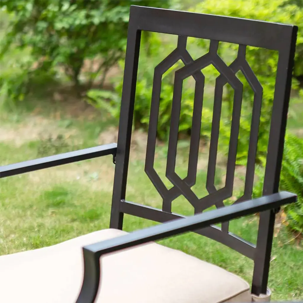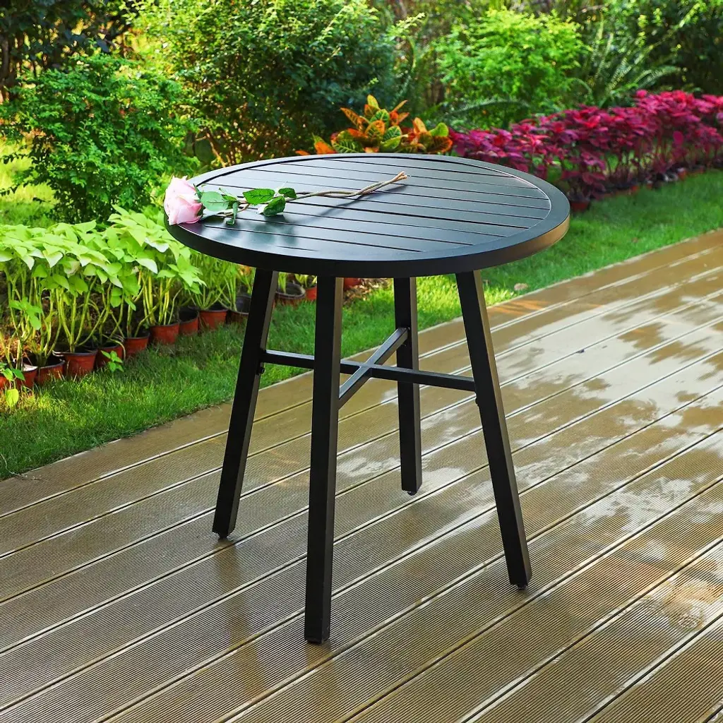 [CAPTIVA DESIGNS] Enhance your outdoor relaxation with our Conversation Set featuring Swivel Chairs & Side Table. The sleek black round coffee table provides a cozy hub for up to four people with its elegant design, cross leg connectors, and slat tabletop. The 360°swivel chairs, designed with a chic perforated back design, boast straight armrests for style and thick cushions for a comfortably cozy seating experience. They are designed to make your outdoor dining moments memorable. Crafted from E-coating and powder-coated steel frame, it's both sturdy and durable, making it suitable for any outdoor setting. Resistant to water, weather, and fading, it is suitable for indoors and outdoors, with easy assembly and maintenance for hassle-free enjoyment.FEATURESStylish and easy-to-clean slatted design.Cross leg connectors for secure attachment of all four legs.360-Degree Swivel Chairs provide flexible seating options.Fusiform-shaped Backs with stylish and functional design.Straight armrests and thick cushions for enhanced comfort.E-coating and Powder-Coated Steel Frame for a sturdy centerpiece.SPECIFICATIONBistro Table: 28.7"H x 28"W x 28"DTabletop Thickness: 1.4 Inches, Weight: 20.3 PoundsArm Chair: 35"H x 22"W x 25"D, 21.3" (seat back height)Seat Dimensions: 20"W x 20"D, Thickness: 2.7"Floor to seat top:15.5" [cushion thickness not included]Weight: 23.7 lbsPackage Includes1 x bistro table (1 box)2 x swivel chairs (1 box)Instruction Manuals (come with each box)(Decorations on the table are not included)Tips: Allow all the holes in the section to line up correctly and then tighten the screws. Assembly: 20 minutes to set up the table and about 30 minutes to put the chairs together.