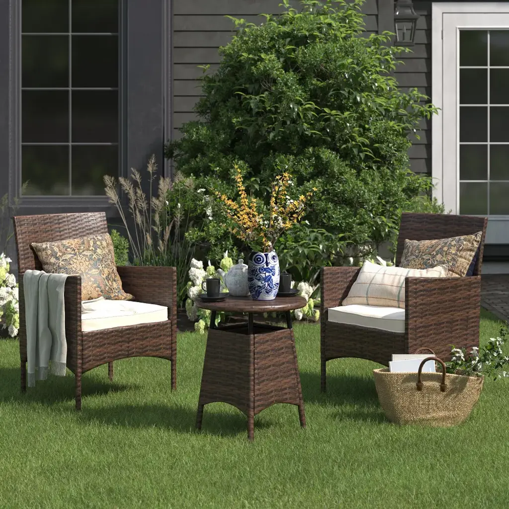 Barton 3 Pieces Outdoor Patio Set 2-person Seating Group With Table, Beige