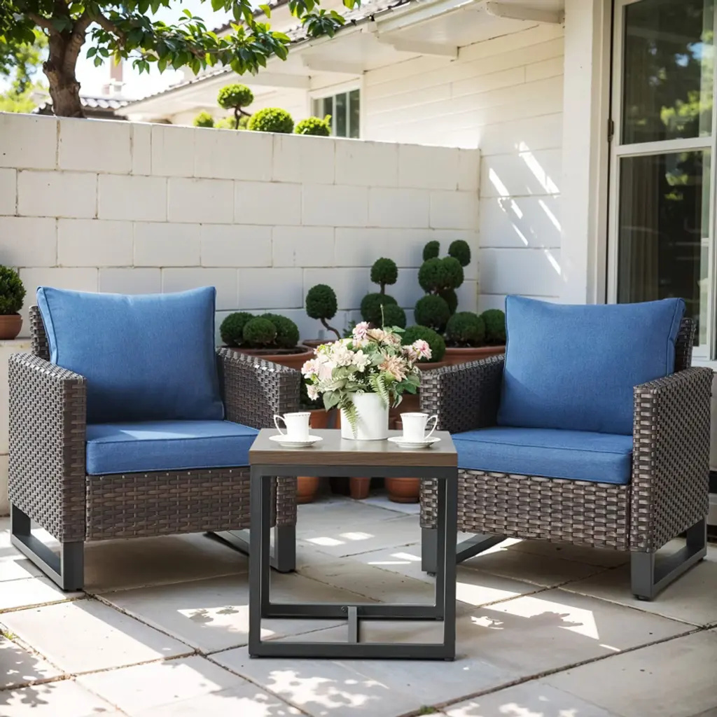 Discover the Essence of Outdoor Comfort! Elevate your front porch with our exclusive Rattan Outdoor Furniture Sale featuring a stunning 3-Piece Patio Set. Each weather-resistant item boasts woven detailing, creating a textured and breezy modern appearance. Whether entertaining guests or savoring moments of solitude with your morning coffee, our furniture creates a cozy and chic ambiance.