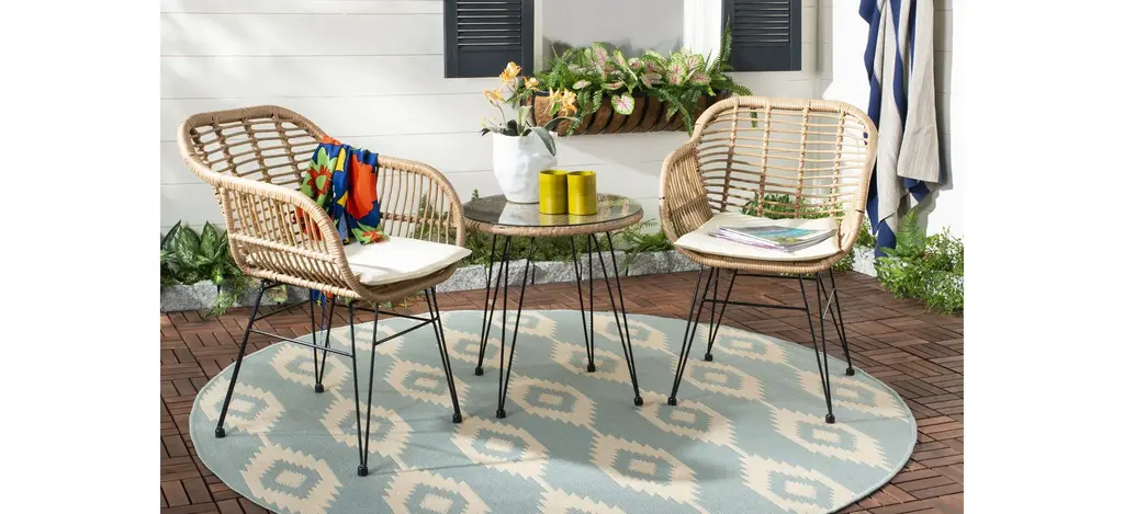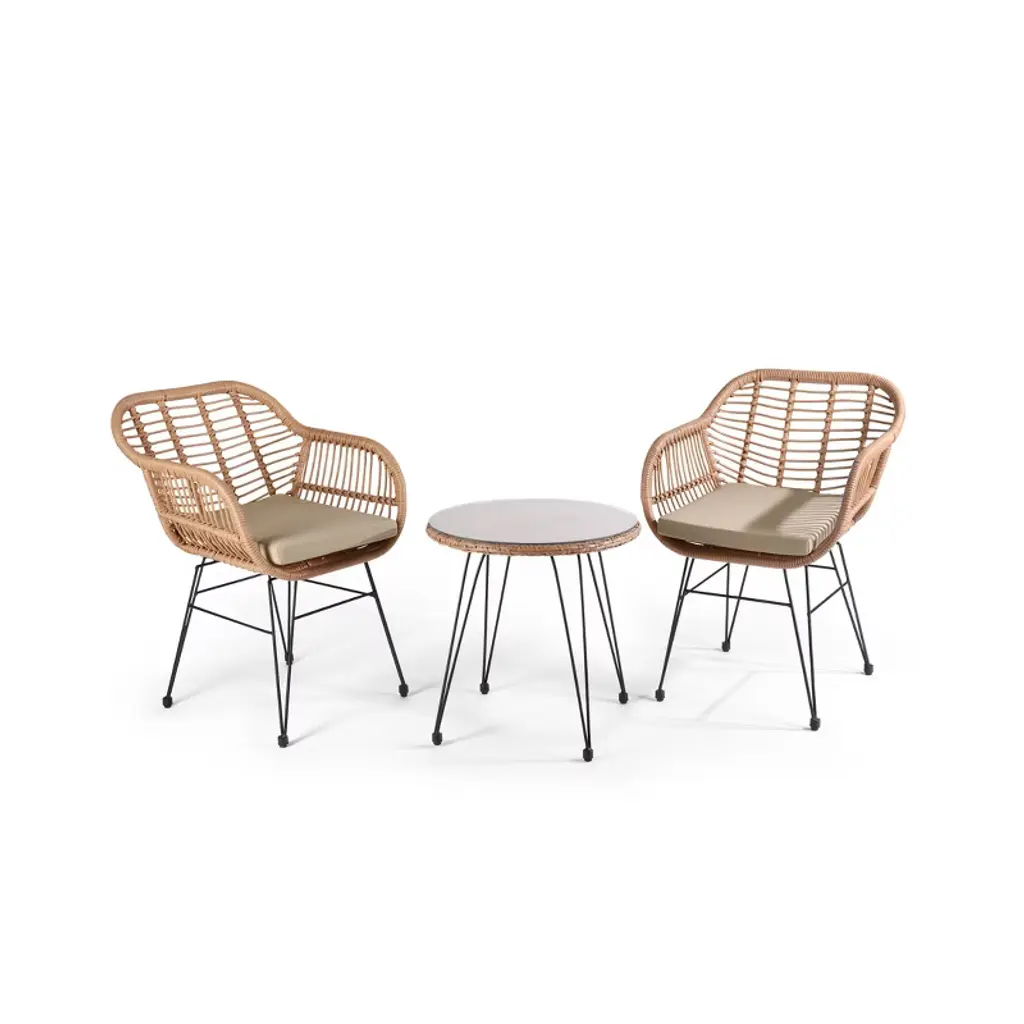 Whether it's an alfresco lunch on the terrace or a romantic moonlight dinner, the contemporary Tandra 3-pc. Patio Set is a must have for outdoor living. Crafted with light rattan, it chic retro hairpin legs bring fresh modern style to any soiree.