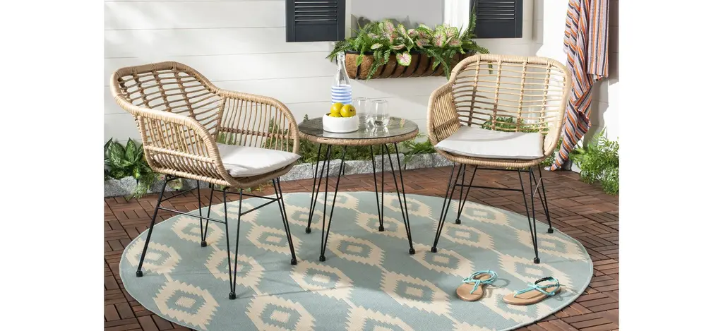 Whether it's an alfresco lunch on the terrace or a romantic moonlight dinner, the contemporary Tandra 3-pc. Patio Set is a must have for outdoor living. Crafted with light rattan, it chic retro hairpin legs bring fresh modern style to any soiree.