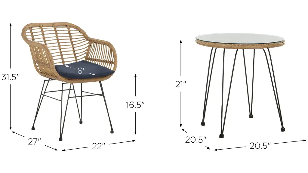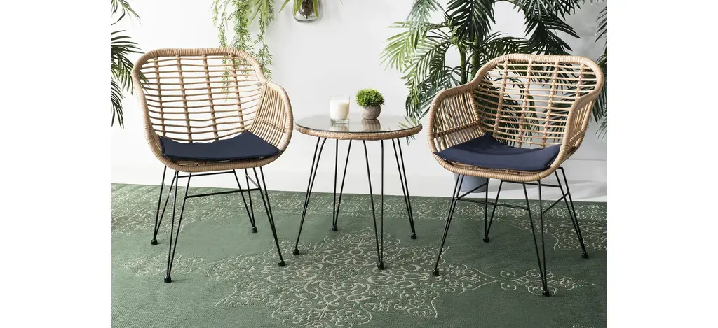Whether it's an alfresco lunch on the terrace or a romantic moonlight dinner, the contemporary Tandra 3-pc. Patio Set is a must have for outdoor living. Crafted with light rattan, it chic retro hairpin legs bring fresh modern style to any soiree.