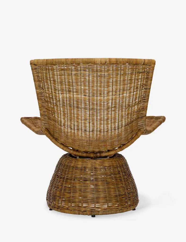 The Amado swivel chair showcases the endless refreshability of wicker. Modern lines and a swivel base bring a fresh edge to the handwoven rattan, offering natural texture, artfully elevated. A disc cushion completes this chair with the perfect touch of comfort.