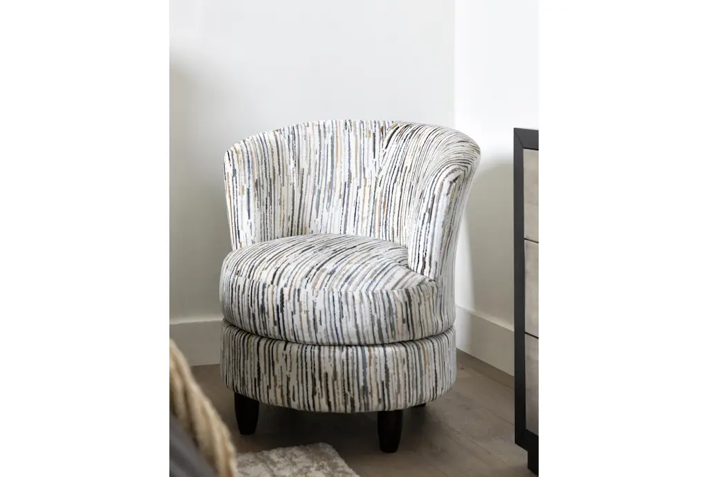 The Apollo Multicolor Fabric Swivel Accent Arm Chair With Espresso Finish offers a comfortable and stylish addition to any bedroom or living room. Designed with a firm comfort level, this chair is perfect for lounging. Made in the USA, it features a swivel mechanism for added convenience.
