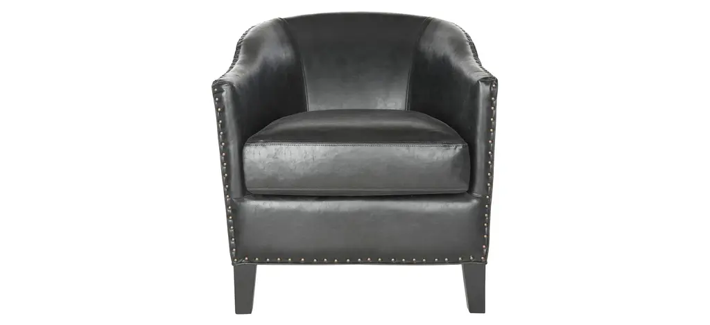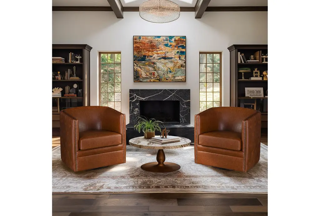 Introducing the Capstone Brown Tufted Barrel Fabric Swivel Chair, a perfect addition to your living room. This traditional chair features a firm comfort level and a round shape, making it both stylish and functional. The brown fabric upholstery is complemented by nailhead detailing, adding a touch of sophistication to any space.