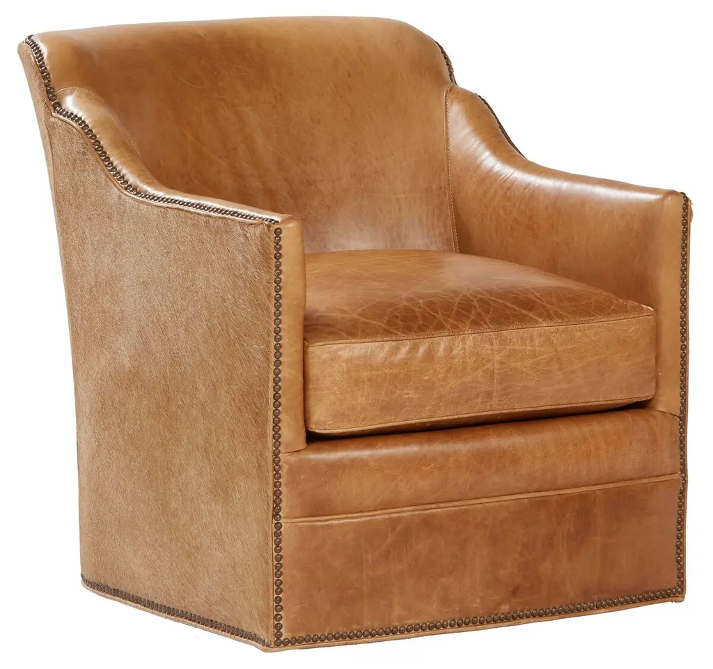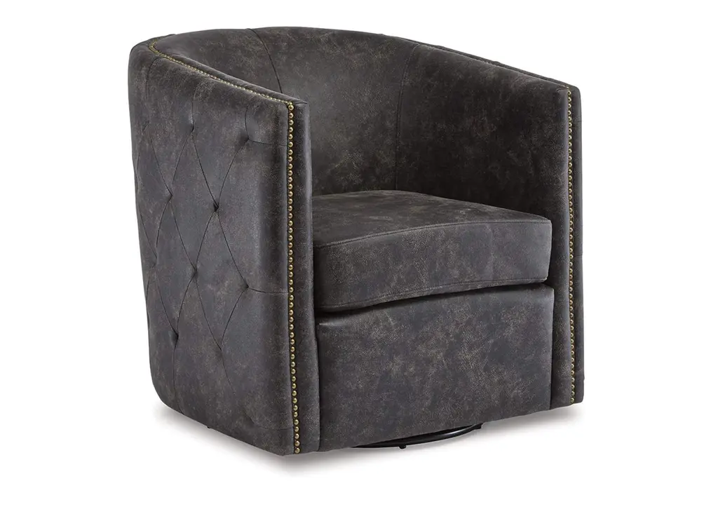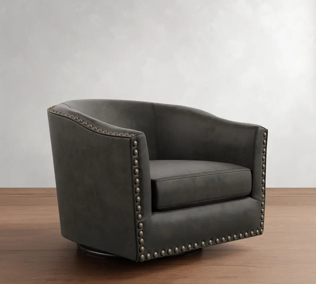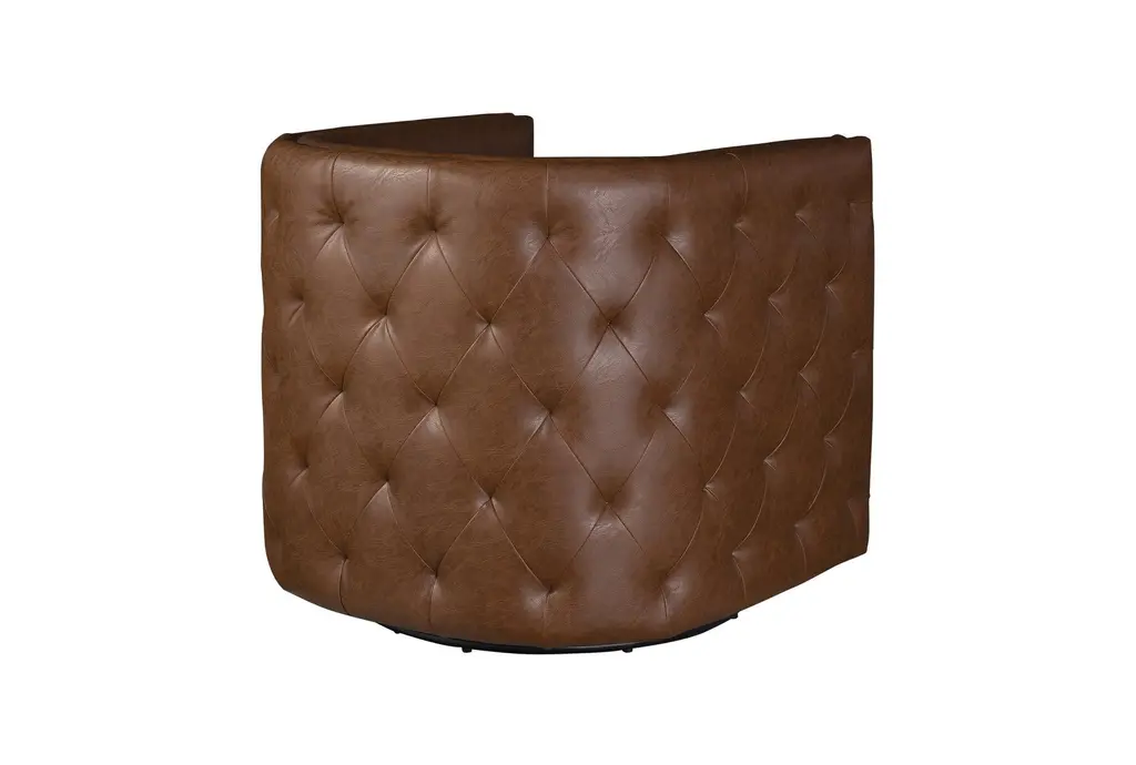 Capstone Brown Tufted Barrel Fabric Swivel Chair | With Arms | Chesterfield | Nailhead