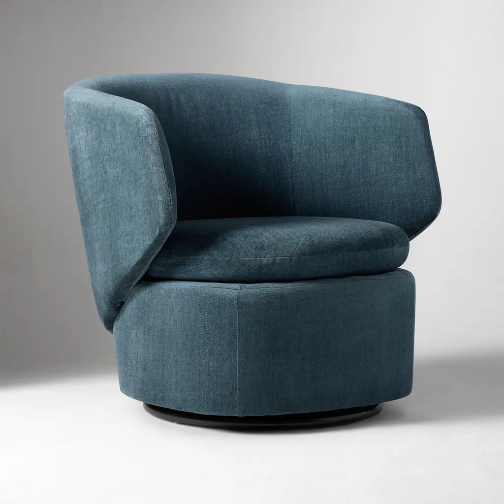 A contemporary update to the classic drum chair. It's perfect for TV viewing and easy conversation. Covered in your choice of popular fabrics.