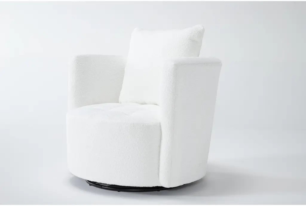 With designs that will keep you on the edge of your seat, our Edge collection reflects a balance of trend-forward details and quality construction elements. The accent chair's solid hardwood frame, tufted seat and swivel mechanism invite you to take a relaxing spin. Special Order customization options also allow you to pick fabrics you love.
