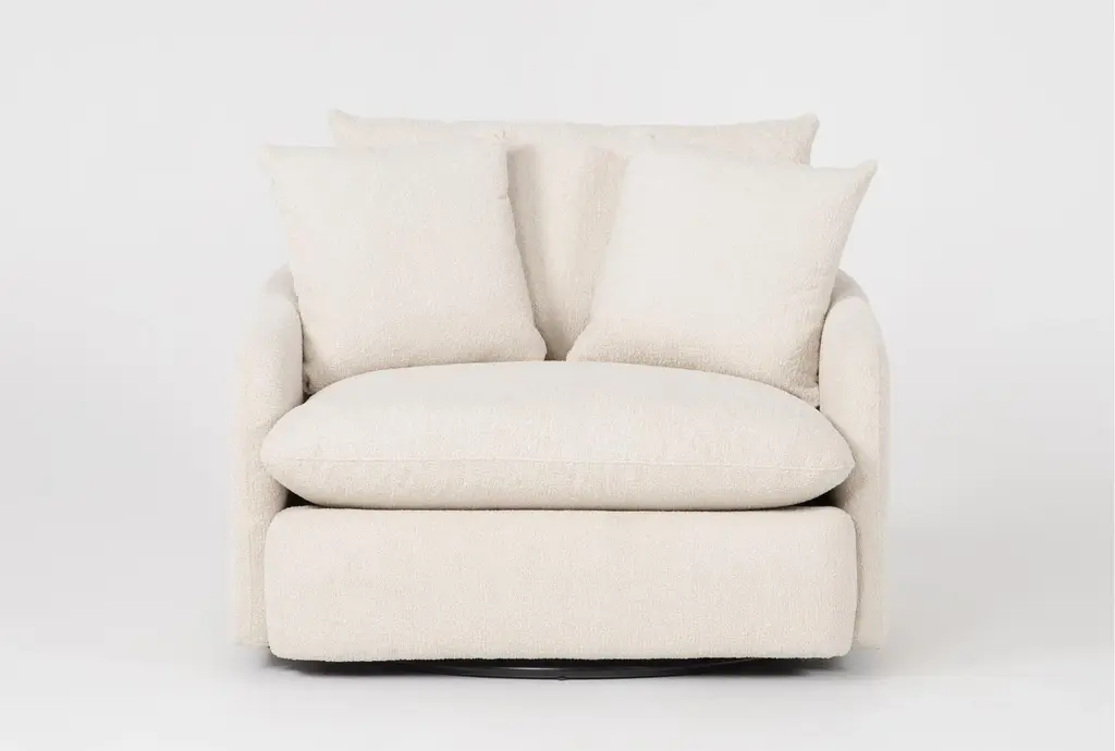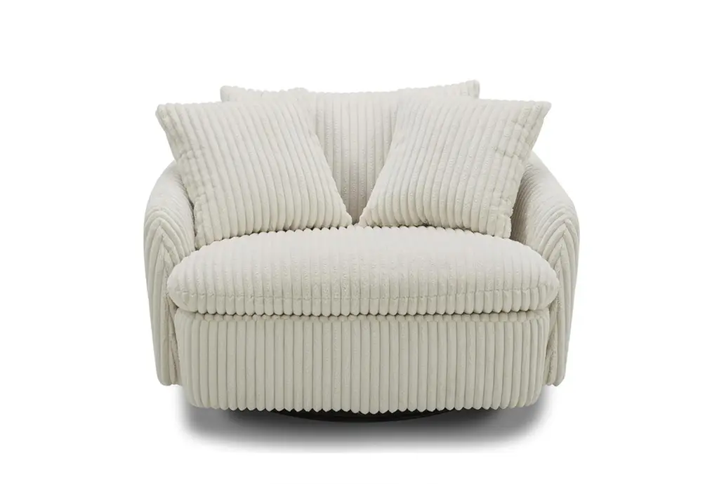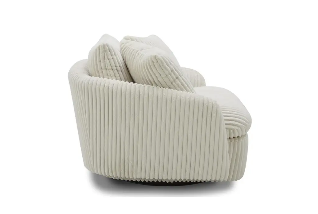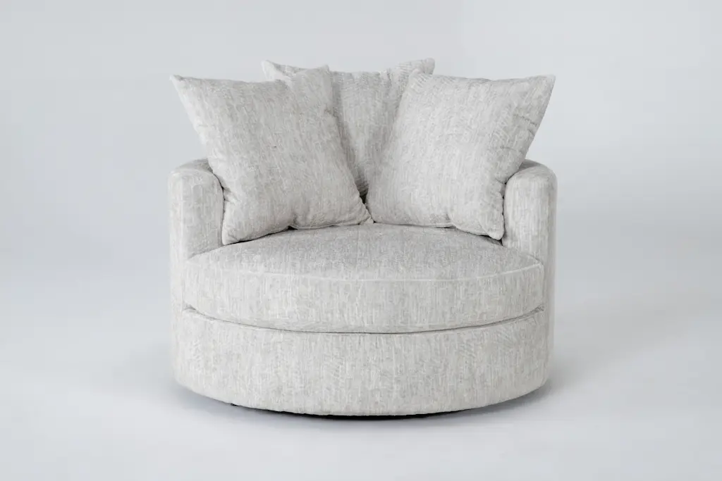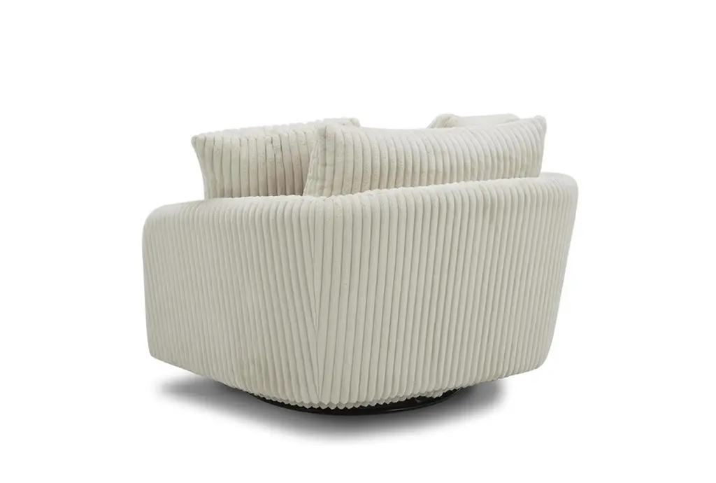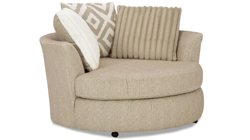 The Grande Ivory Swivel Cuddler with 2 Toss Pillows is a casual addition to any living room. Its Mega Ivory color adds a touch of elegance to your space. This design is the perfect bedroom chair, reading chair, club chair or accent chair for living room.