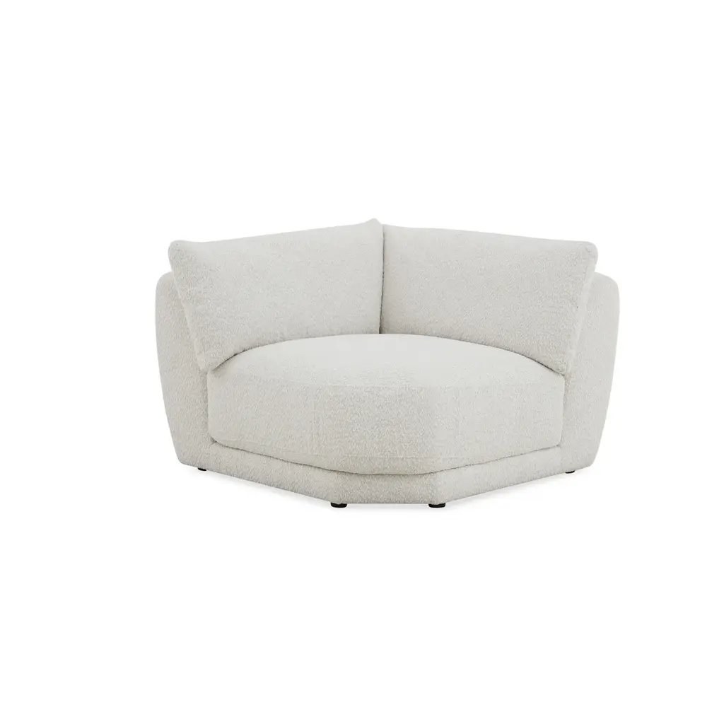 Grande Ivory White Fabric Curved Swivel Cuddler Chair With 2 Toss Pillows