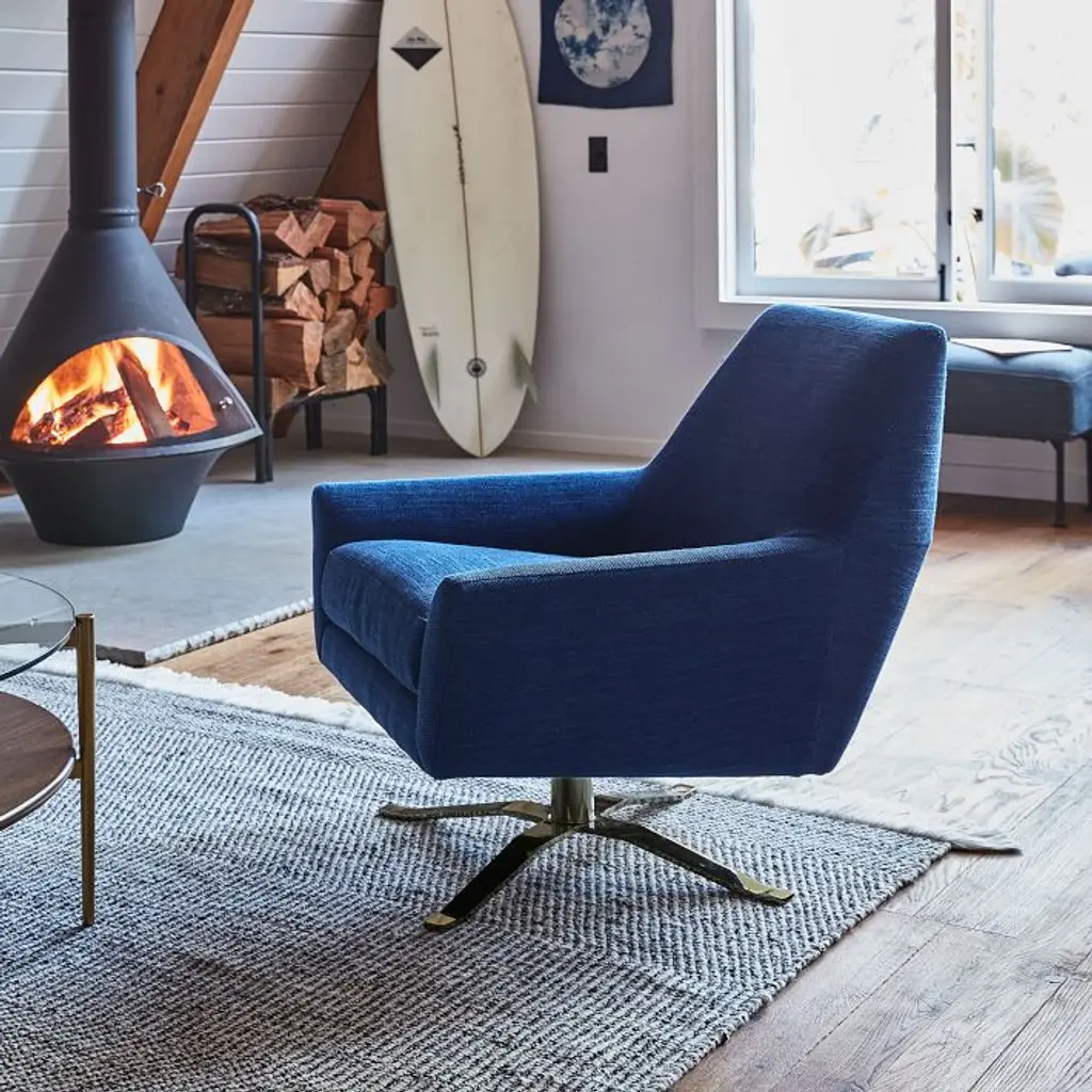 Metal swivel base in a Burnished Bronze finish. Loose, reversible cushion (Astor Velvet excluded) with zip-off cover. Imported.