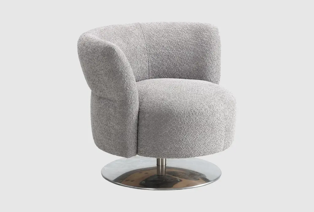 Pewter Fabric + Chrome Base Swivel Accent Chair