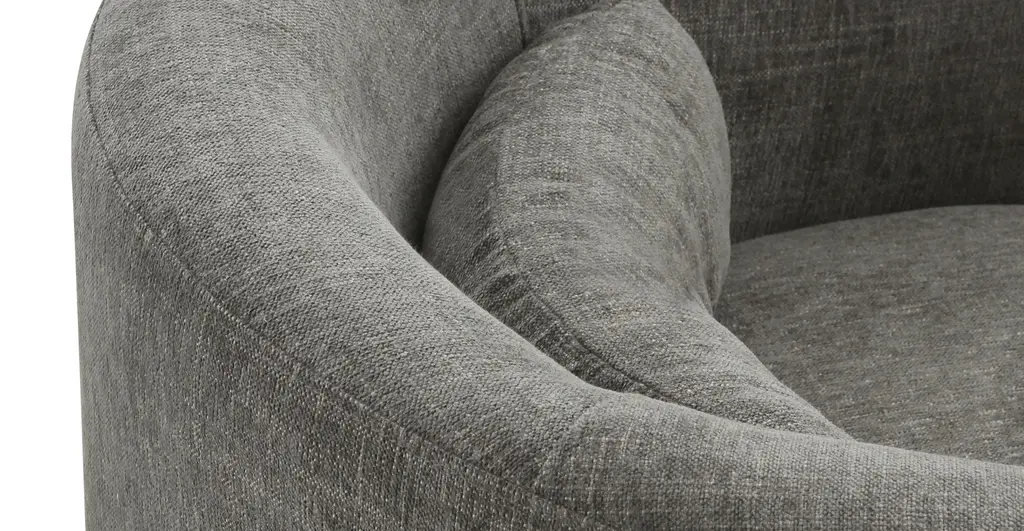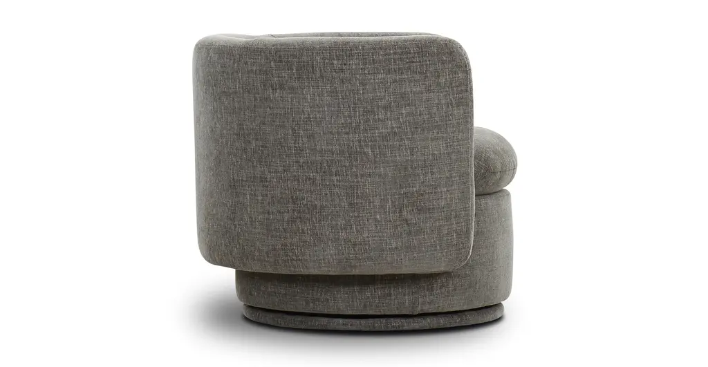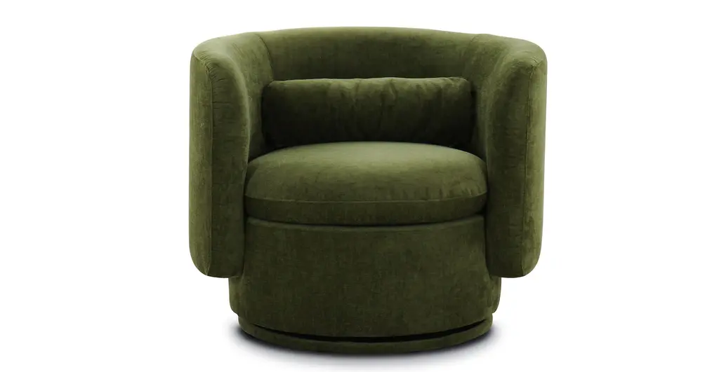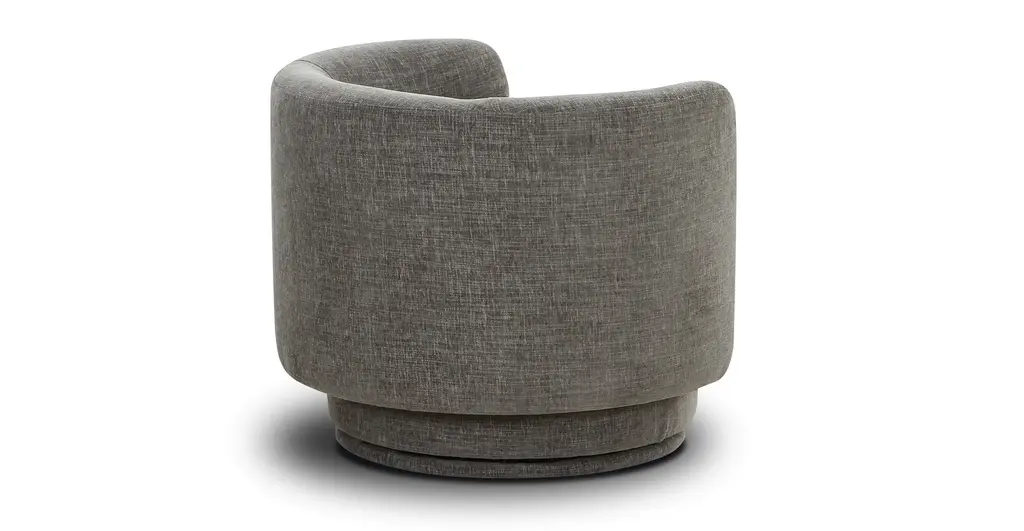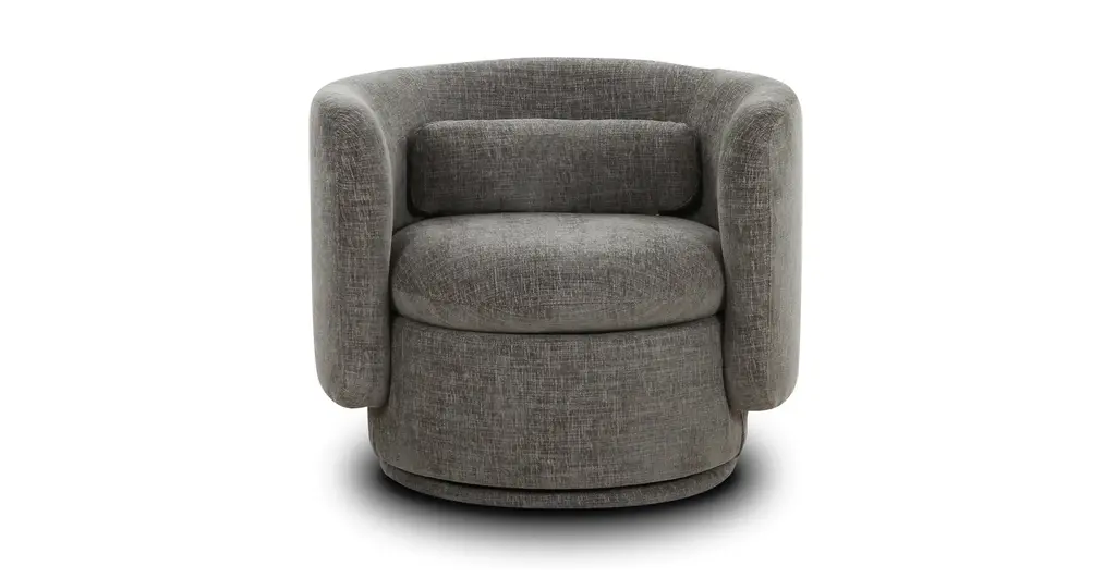 Get ready for glamour! Our Tuzla Swivel Chair exudes curved sophistication with its semicircular silhouette. A low profile, sleek armrests, and a bolster pillow set this accent chair apart from the rest, and the fabric covered swivel base allows you to swivel in style without having to view a metal base, brilliant.