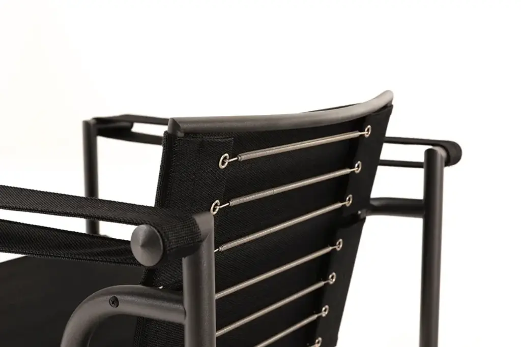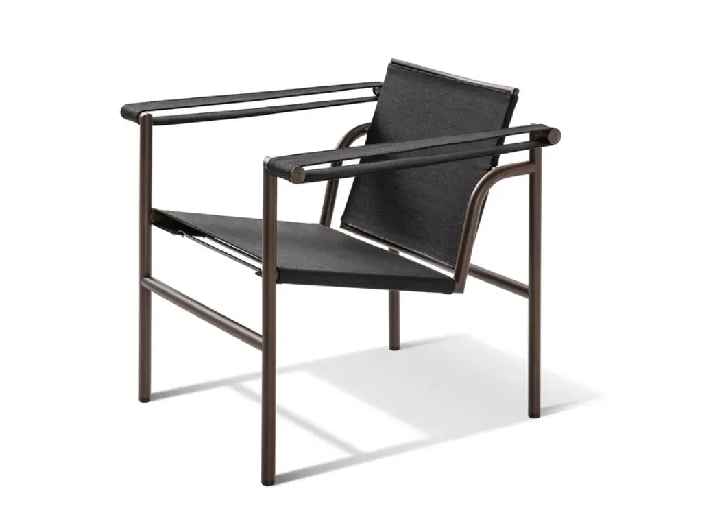 A lightweight, compact chair, designed in 1928 and introduced in 1929 at the Salon d’Automne [Autumn Salon], along with other extraordinary pieces, such as the Fauteuil Grand Confort, petit modèle and grand modèle, the Table Tube d’Avion table and the Chaise Longue à reglage continu. Like the other pieces in the collection, the Fauteuil à dossier basculant armchair is the result of in-depth study of human posture and, in this case, is specifically engineered to provide perfect support for easy-going relaxation that is conducive to conversation. Its elegant simplicity of design allows the armchair to fit easily in various settings.Now, it also comes in an outdoor version with a special textured paint finish in five colours and with its own dedicated upholstery collection.Cassina designs complete, comfortable and inviting living spaces where the most innovative products of contemporary design coexist alongside icons by the great masters of the Modern Movement.