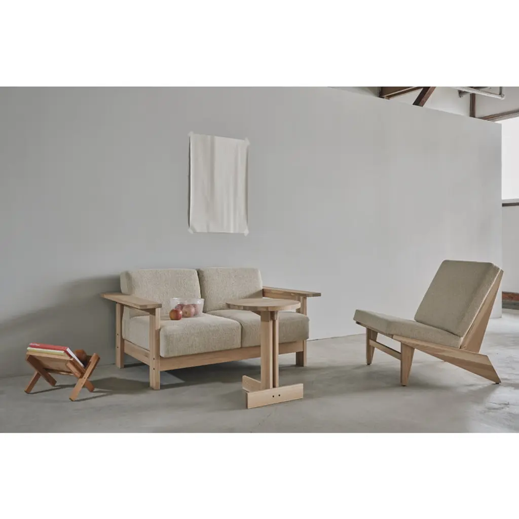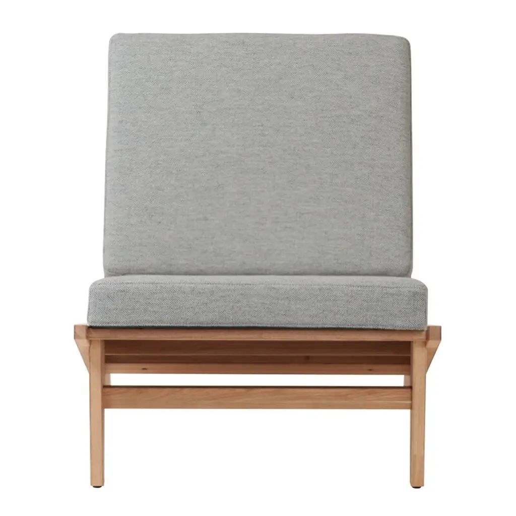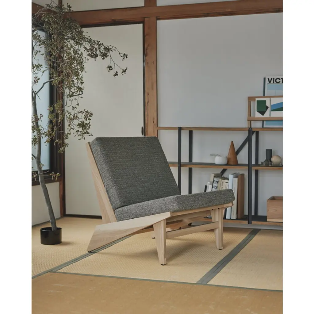Ishinomaki Laboratory’s 105° lounge chair, designed by Norm Architects, is a minimalist piece defined by clean lines and a calm, understated presence. Its name refers to the 105-degree angle of the backrest, which invites you to unwind – whether you're chatting with friends, enjoying a quiet moment, or diving into a good book. Light and low in profile, the lounge chair fits effortlessly into smaller spaces or can stand freely in the middle of a room. The frame of the 105° lounge chair is crafted from Japanese hardwood with a visible grain and finished with a protective laminated layer. The square-shaped seat cushions are upholstered in Kvadrat’s hardwearing Hallingdal wool blend, making the chair a durable choice for both family homes and public interiors.