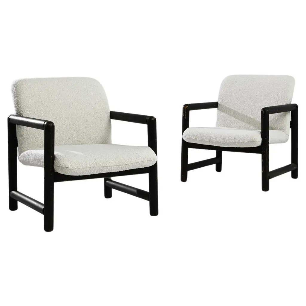 1950s Harvey Probber Style Ebonized Slipper Lounge Chairs In Heavy Boucle