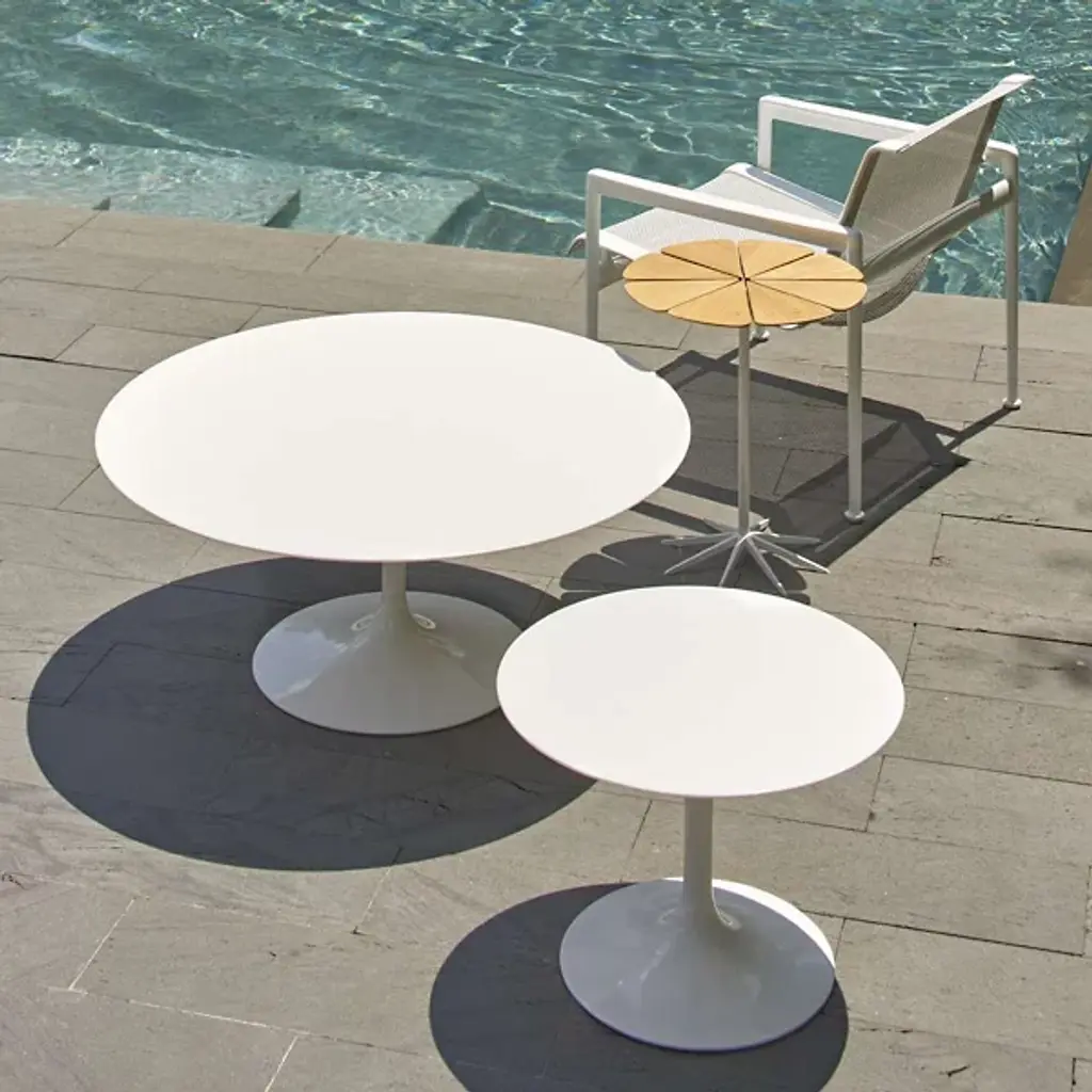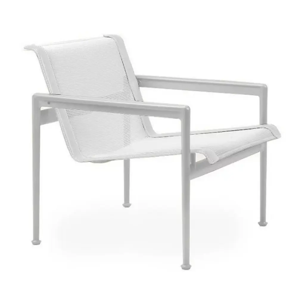 Confident that the patio could be every bit as trendy as any indoor space, Florence Knoll brought a request in 1962 to designer Richard Schultz: to design a line of furniture that could withstand the elements without compromising on style. Schultz responded with the 1966 Collection, including this angular Lounge Chair with Arms by Knoll, sporting sharp 90-degree angles, creating the ideal combo of aesthetic form and practical function.