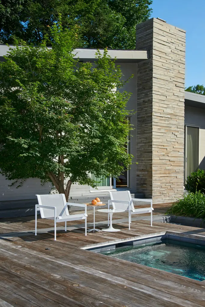 Designed in 1966, Richard Schultz’s outdoor collection is regarded as the first modern outdoor furniture and has been the category standard ever since. The aluminum frame is resilient to weather, while the mesh seat permits airflow to keep you cool.In the late 1950s, Richard Schultz received an envelope filled with rusted bolts from Florence Knoll, who was spending time at her Florida home. She tasked Schultz with the job of designing elegant outdoor furniture that could withstand corrosive sea air, season after season. Introduced in March 1966, the Leisure Collection, now called the 1966 Collection, was described by Schultz as “a breath of fresh air” for modernists. “Outdoor chairs should be enhanced by the elements,” he said. “Wind, sun, and rain should pass freely through, and they should breathe.” And breathe they do, all these years later.