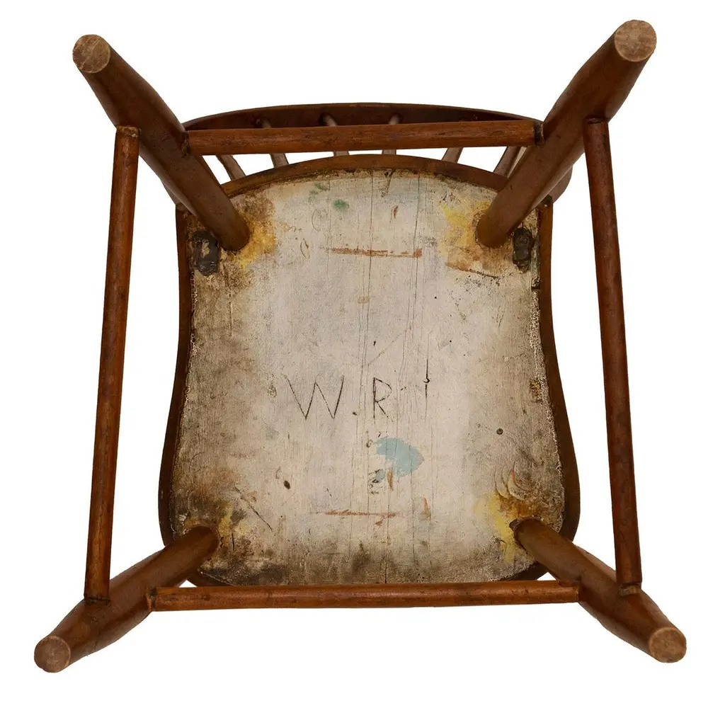 Beautiful set of four handmade Maple Tavern chairs that were made in Connecticut. They were purchased from an estate in Westport. They were owned by the same family since they were first made in the 1830's. The artisan signed one of the four chairs with the two initials that can be found on the underside of the chair. These chairs would make a wonderful accent to ones home and they would easily work with various styles, and they bring a slice of history into ones home.