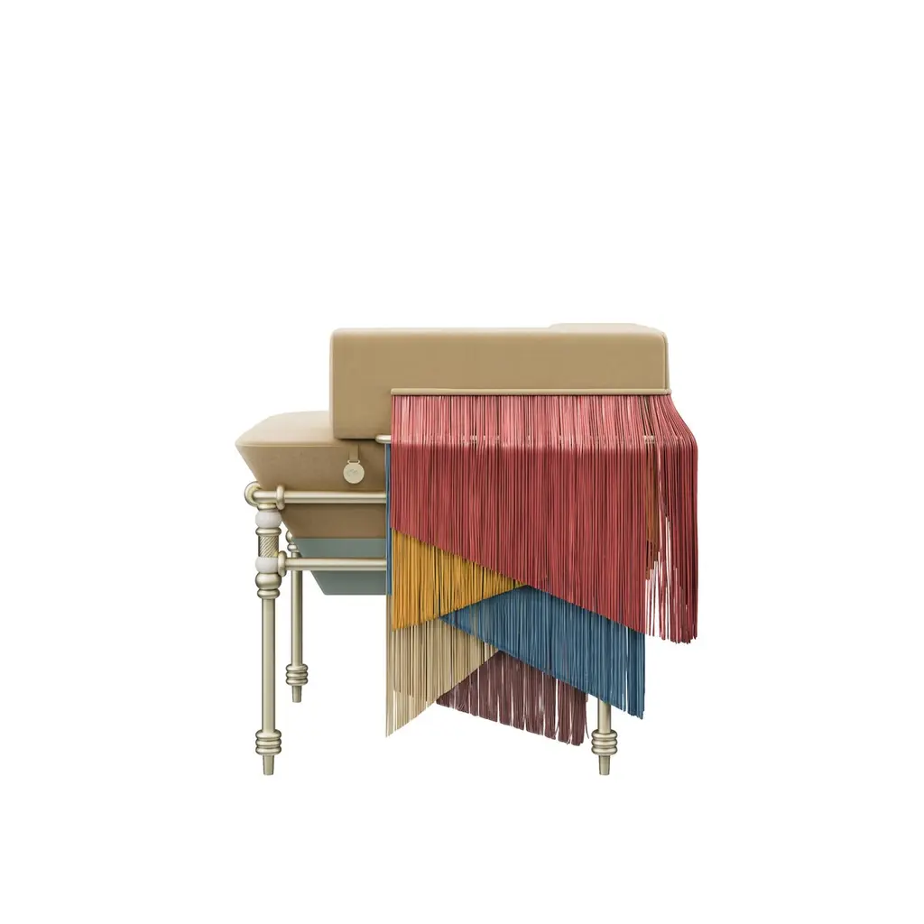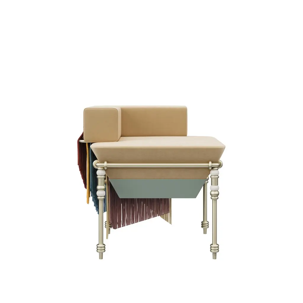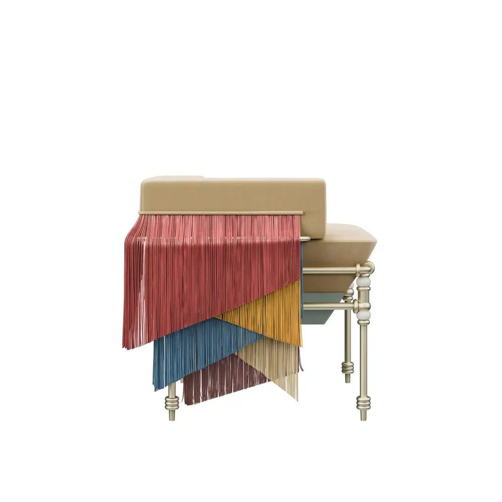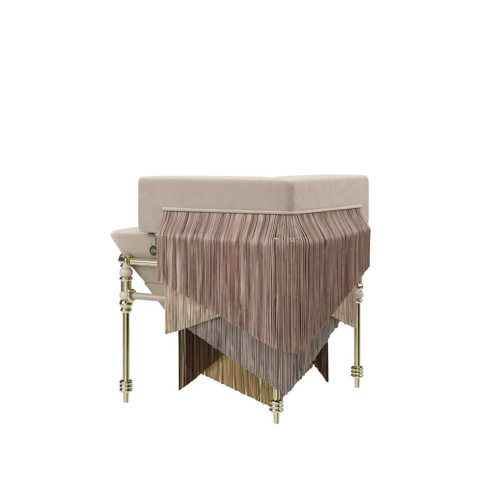 Elevated elegance meets celestial charm in the Seraphine Corner Chair. Upholstered in sumptuous velvet with delicate fringes and lacquered accents, this piece radiates serenity and allure. Designed for quiet moments and intimate corners, its sculptural silhouette and steel structure create a harmonious balance between strength and softness. Seraphine invites you to retreat into a space of subtle luxury, where every curve whispers calm, and timeless beauty finds a modern voice.