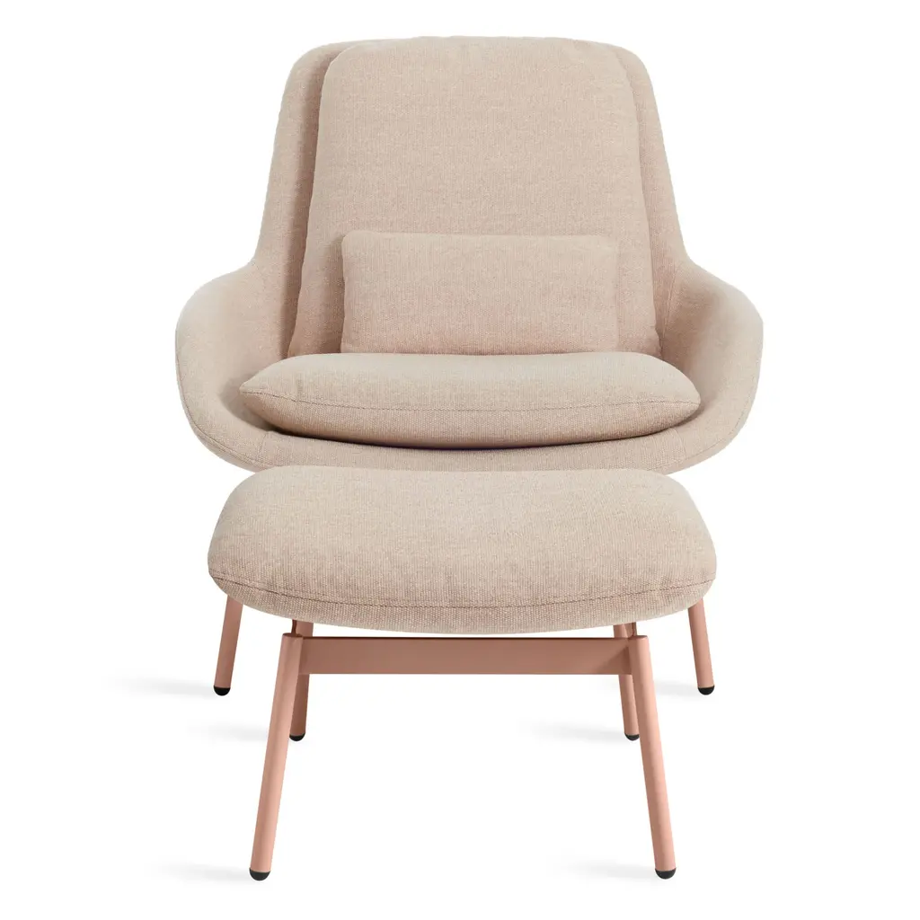 Shapely curves, a gentle recline and “just-right" cushions invite the lost art of unwinding. A sculptural powder-coated steel base sets up the striking profile. Field Ottoman also available.