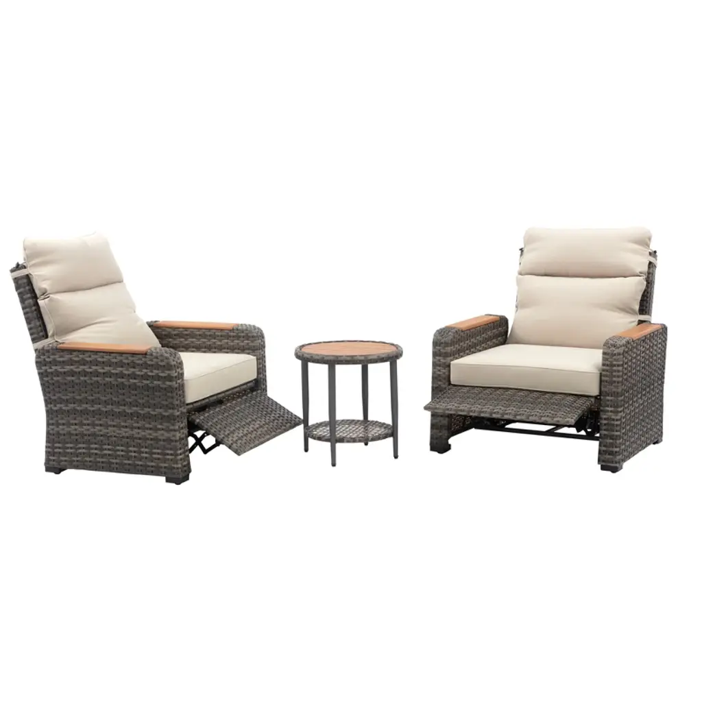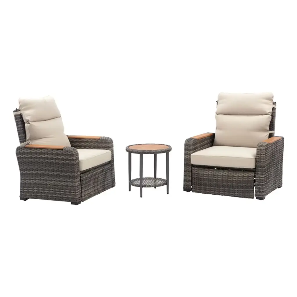 3-piece Wicker Recliner Set, Gray – Teamson Home: Reclining Chairs & Wood Armrests