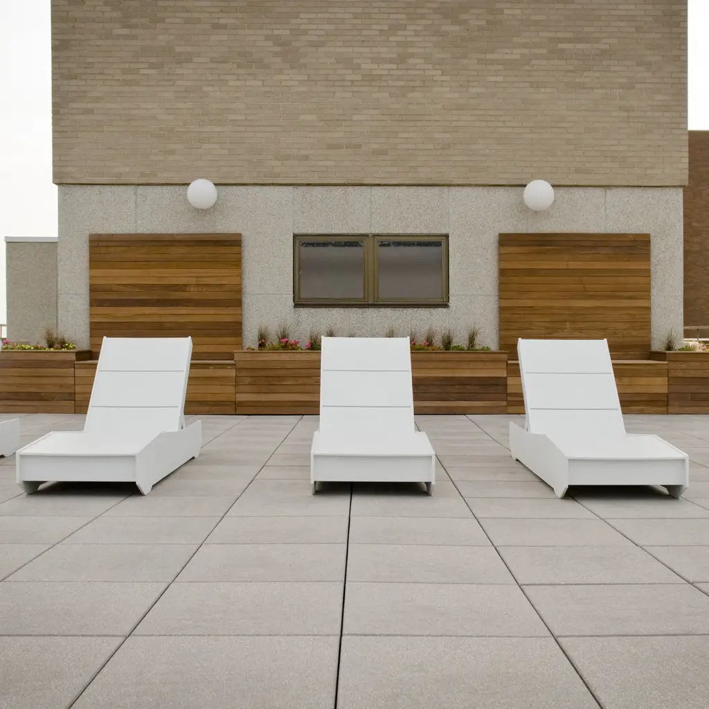Designed to work exceptionally well in the sun, the 405 Chaise from Loll Designs is the best way to relax and unwind after a long day. The movable back rest has five settings, and a convenient shelf is exposed when the back is up to help keep all of your essentials off the ground. Perfect as a pool lounge chair, the recycled plastic construction is unaffected by harsh weather conditions, while the hidden wheels make it a breeze to move around, Highlights UV INFORMATION: RICHLITE: LOW-IMPACT MANUFACTURING: