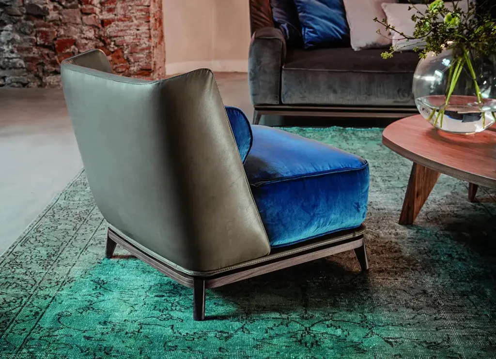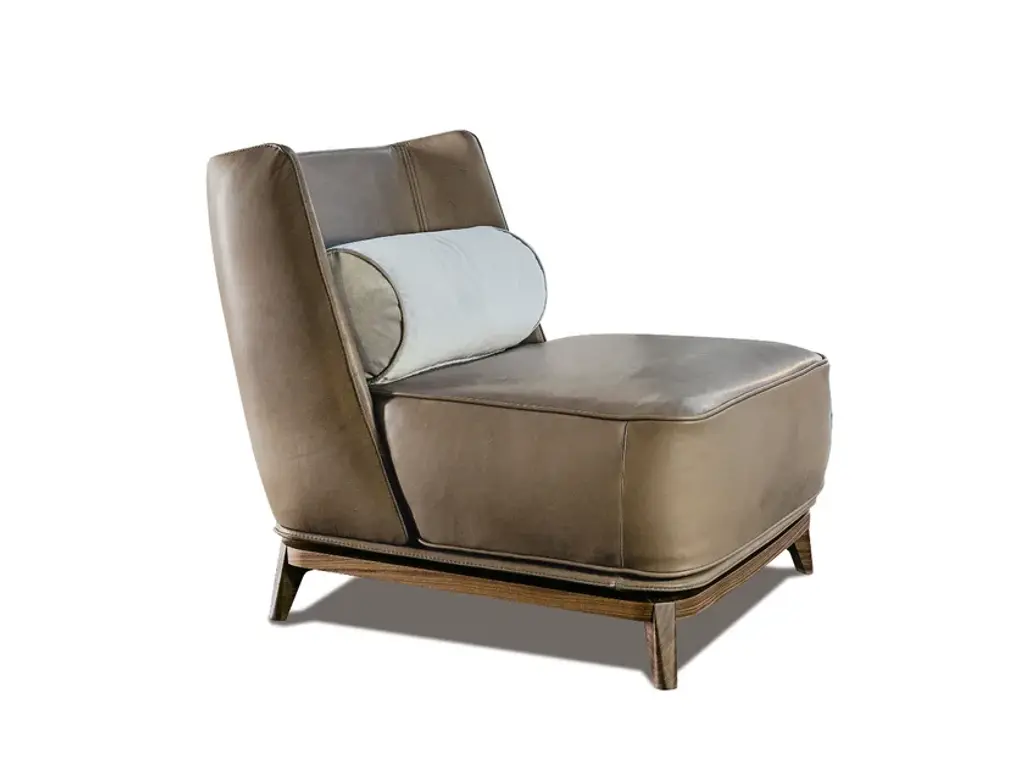430 Opera is a leather or fabric armchair.430 Opera is an armchair available with completely removable covers in cotton, linen, leather or with custom covers.The armchair has a plywood structure and has been designed with the utmost attention to style, fineness, quality and care for details that are typical of Interior Design Made in Italy.Armchairs technical featuresFrame base/backrest: Multi-layer wood.Seat cushion: Polyurethane foam with different densities covered with Memory foam layer.Backrest roll: Silicone polyester fibre covered with 100% cotton lining.Base/backrest finishing: In leather according to choice.Feet: Canaletto walnut wooden base and feet.Cover: Seat cover in fabric or leather. Back cover in leather. Fabric cover completely removable