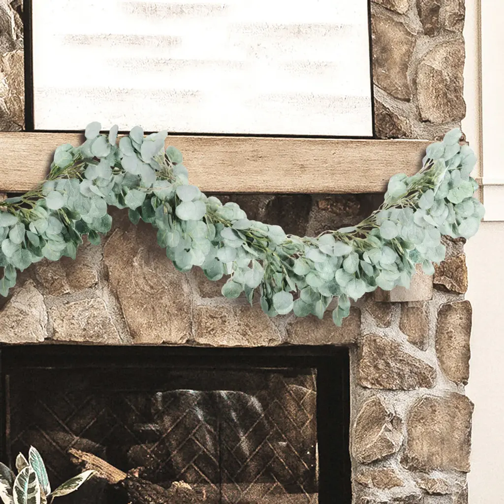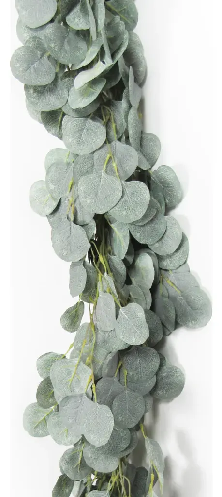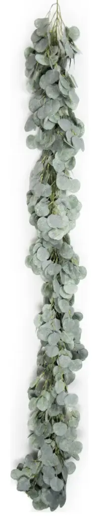 Charming and full, this gorgeous eucalyptus garland is versatile for any display setting - mantels, tabletops, chairs, walls and more. Hang from the ceiling, wrap around arches and columns, or arrange with other plants and floral displays. Perfect accent for home, weddings and special events! Its realistic and fresh look is eye-catching and hard to miss! Forever fresh, no maintenance or hassle.Features: • 72" L x 8" W x 8" DP• Realistic and detailed silver dollar eucalyptus leaves and color variegation• Bendable & flexible garland branch, perfect for hanging as home decor or event decor • Dangling, hanging, lightweight• Best for indoor or covered outdoor usage• Product may ship compressed. Primping of branches or leaves may be required to match the image shown.Images represent actual product, but please understand color may vary slightly due to differences in computer monitor color displays, photographic lighting, or image enhancement.