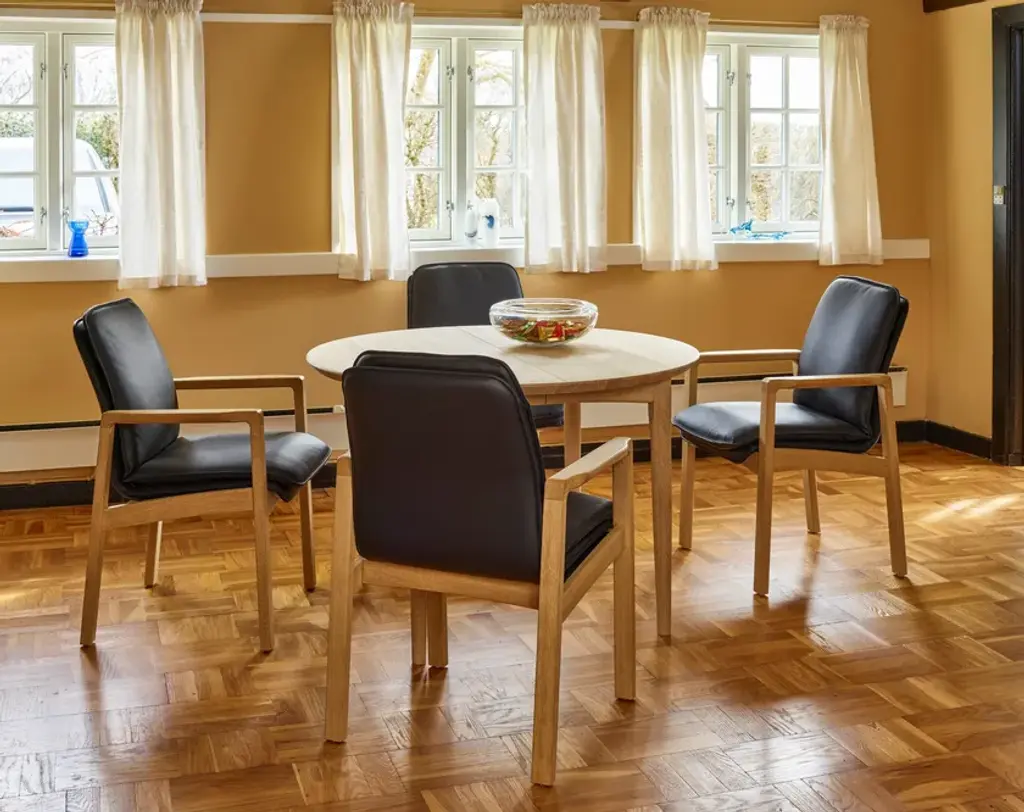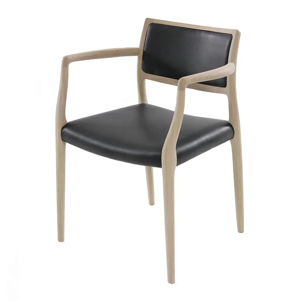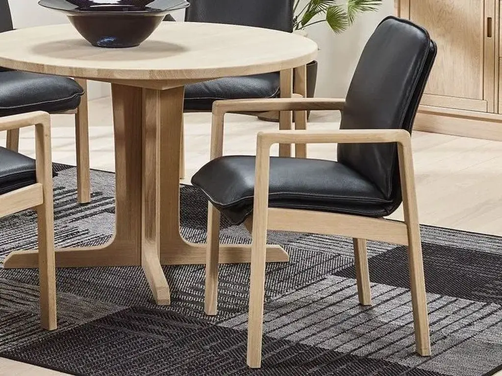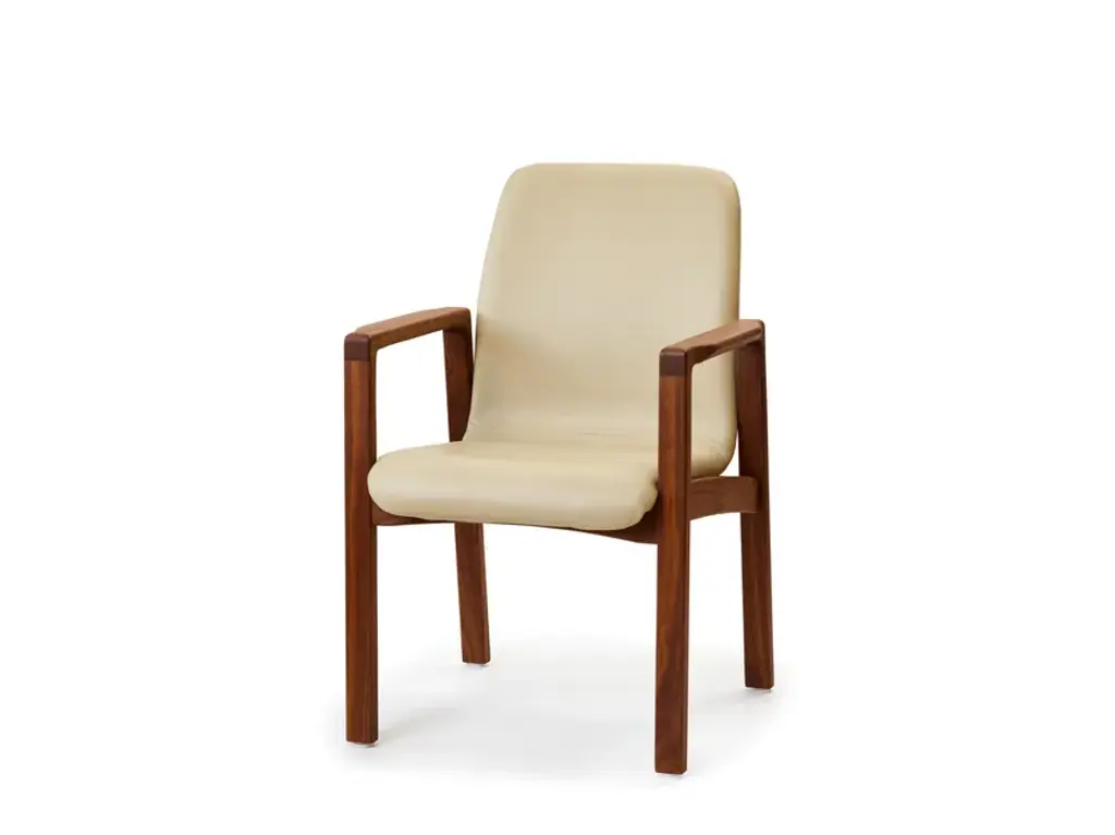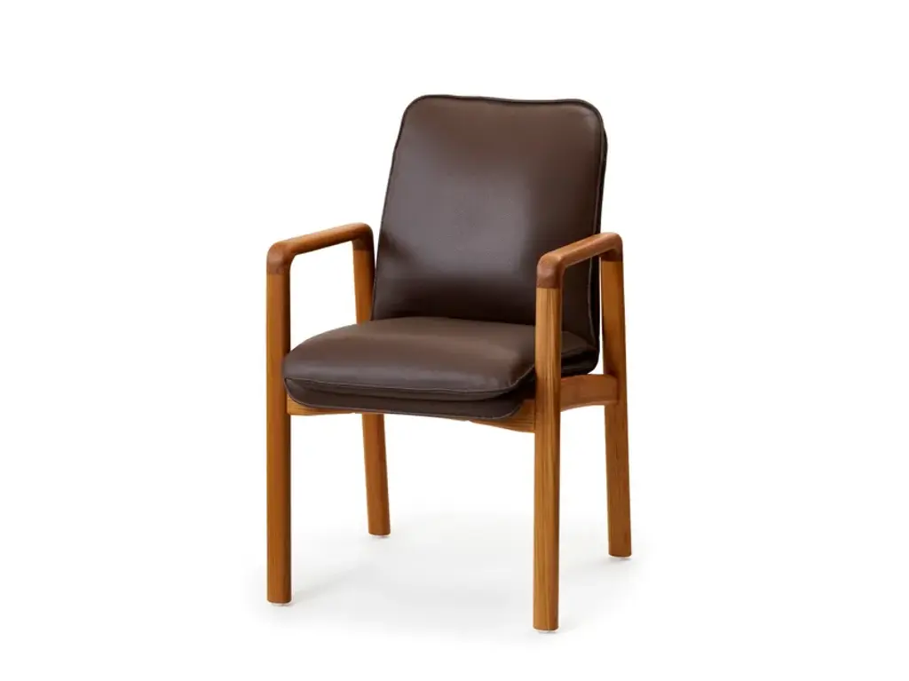 8474ALK Leather chair with armrests.Available in: Teak, Oak, Ash, Alder, Wild oak, Cherry, Walnut,Buche, Kiefer & Kernbuche.