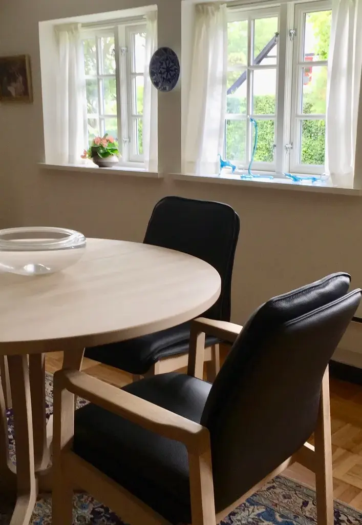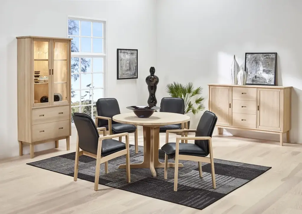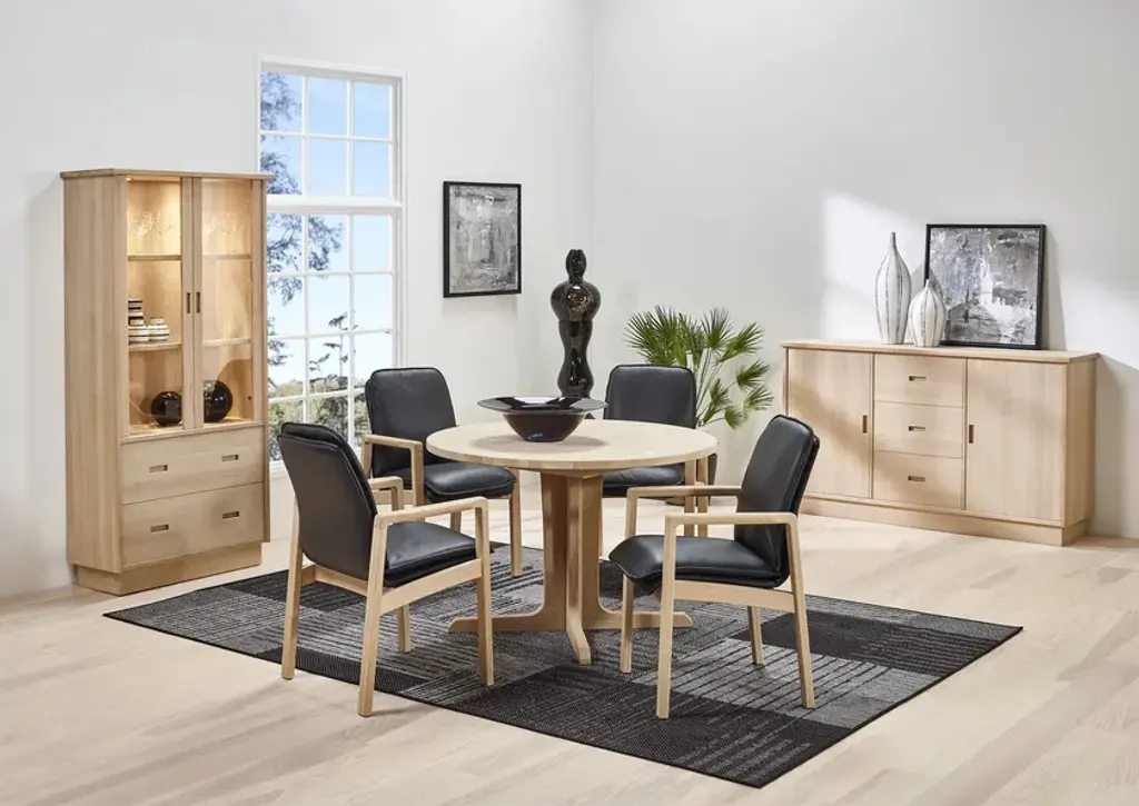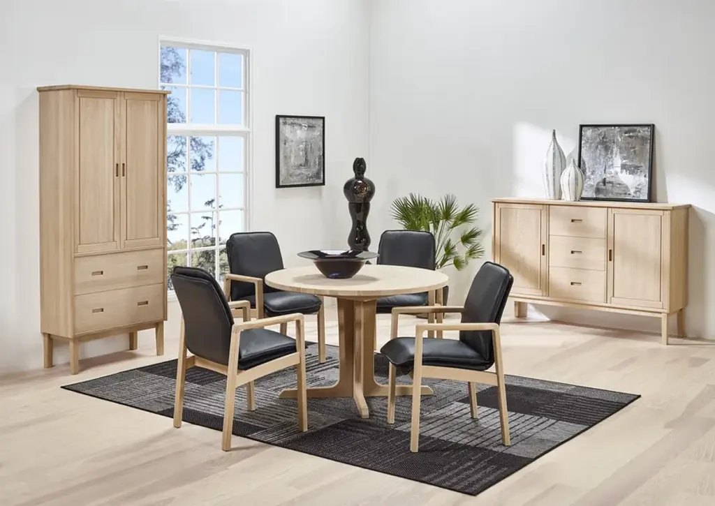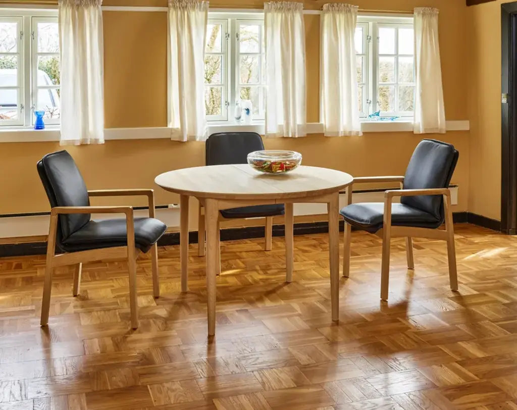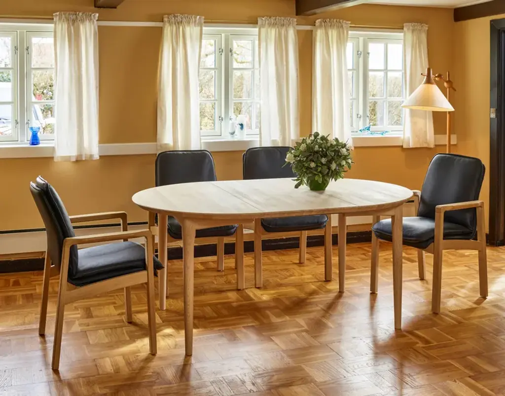 8474ALK Leather chair with armrests.Available in: Teak, Oak, Ash, Alder, Wild oak, Cherry, Walnut,Buche, Kiefer & Kernbuche.