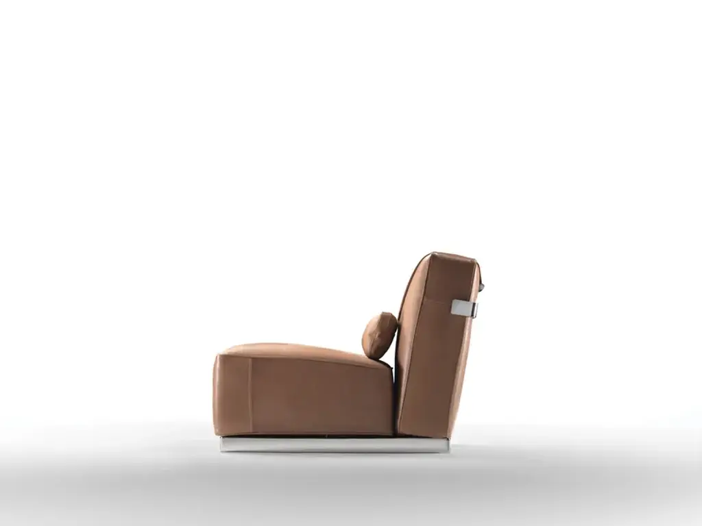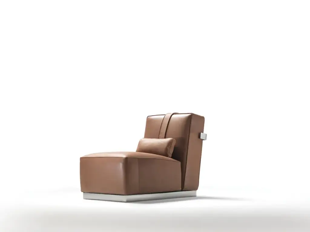 The A.B.C.D. armchair is a re-edition of the iconic A.B.C. armchair, introduced in 1996. Some substantial changes were made to the new version, launched in 2014 – like the re-design of the base and elimination of the armrest – to give it a softer look. The metal structure of the armchair comes in satin, chrome, burnished, black chrome or champagne finish. The A.B.C.D. armchair can be paired with its namesake ottoman-footstool and is equipped with a state-of-the-art mechanism for reclining the seat back. An elegant accessory is also available – a convenient headrest with soft goose-down padding and metal counterweight. The A.B.C.D. armchair was awarded honorable mention by the international jury of the 24th ADI [Industrial Design Assn.] Compasso d’oro Award.TECHNICAL SPECIFICATIONS Frame in satined, chromed, black chromed, burnished or champagne metal Seat in wood and metal with polyurethane padding covered with a protective fabric lining Backrest in metal with foam injected polyurethane covered with a protective fabric lining Movement extendible Mechanical movement Headrest cushion – down-filled with counter weight in satined, chromed, burnished, black chromed metal or champagne Upholstery removable fabric or leather coversMATERIALS Frame: metal finishes Upholstery: cashmere - cotton - leather - nabuk - linen - mixed composition - velvet