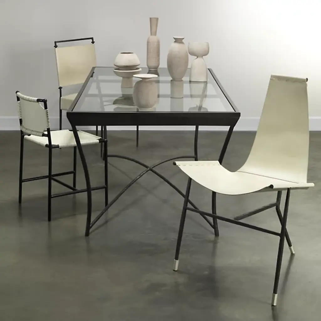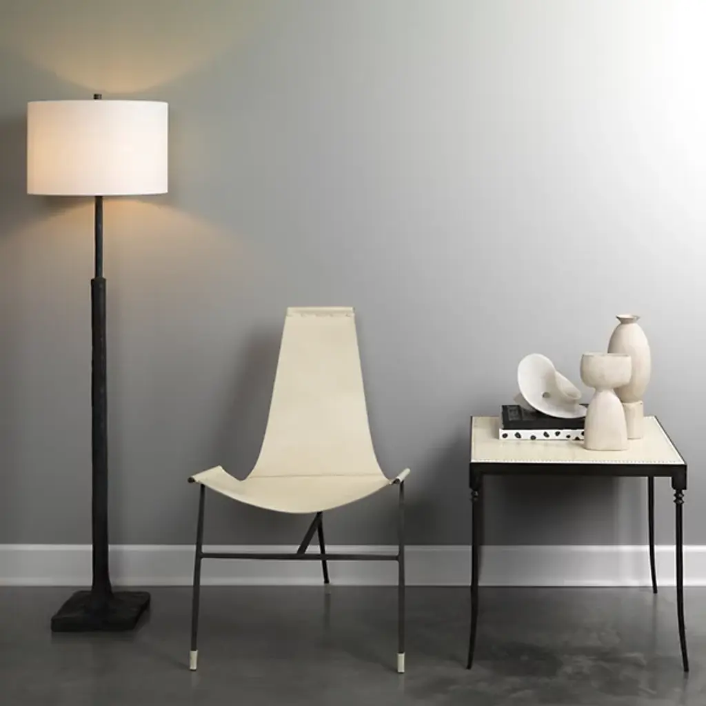 Presented by Jamie Young Co, the Abilene Lounge Chair is a transitionally styled luxury furnishing with rustic modern influence. Off-white leather contrasts boldly with hand-forged iron legs in this artisan-crafted piece, while the sabered legs and visible stitching add further interest. Pair the Abilene together with a like piece or in multiples for a stylish grouping.