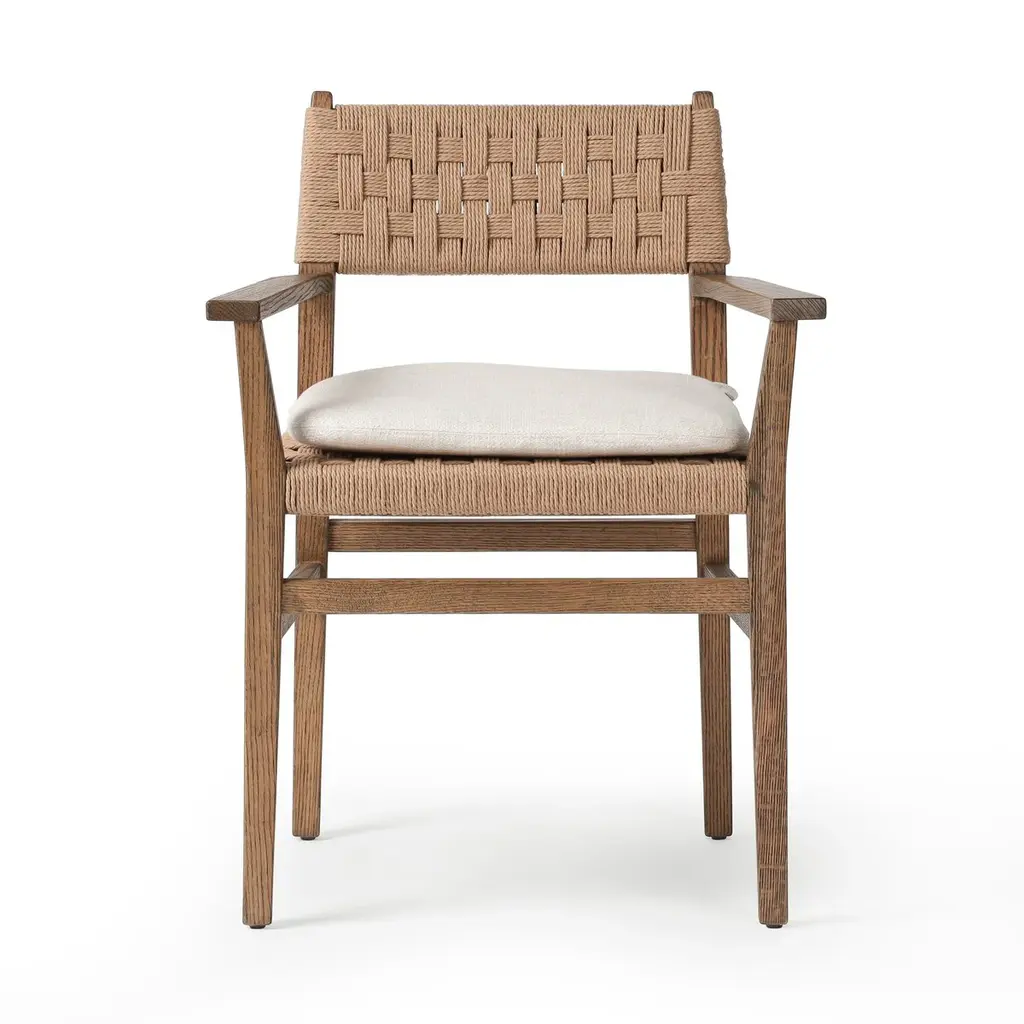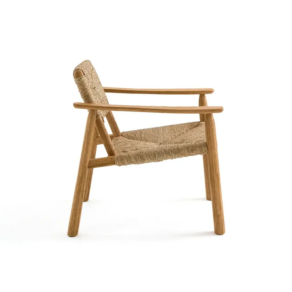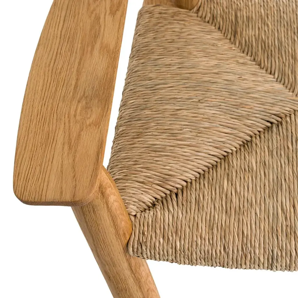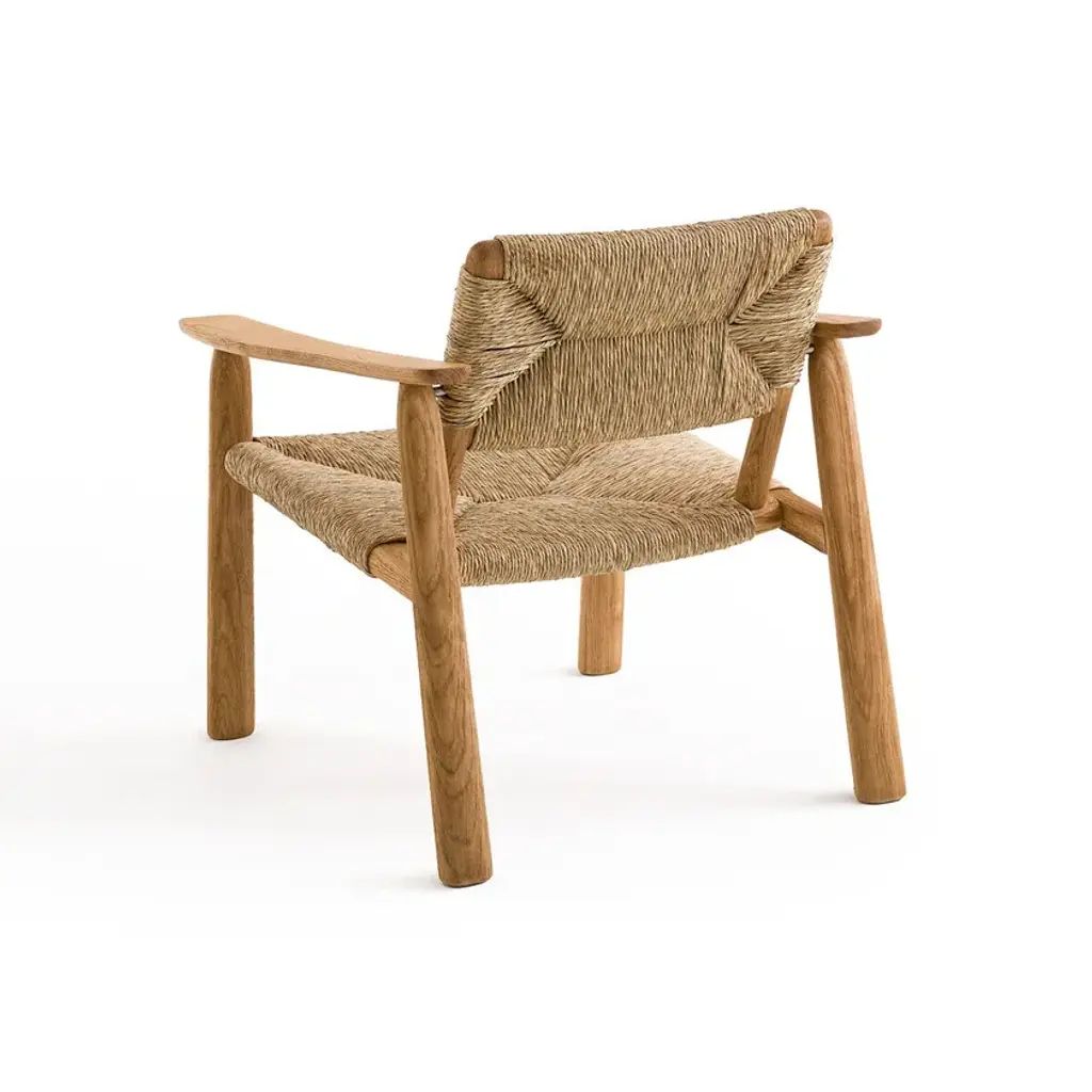 An Emmanuel Gallina creation, exclusively for AMPM. The designer combines elegance, prominence and simplicity. Attention to detail is a constant reality for him, in line, form and function. Inspired by Japan, the small Abondance armchair is a subtle mix of traditional know-how and modernity. The seat and backrest are suspended between two sturdy torii-like bases. A successful combination of raw and natural materials, solid oak is sanded and straw is woven. Its architecture is sensitive, with oval-section legs and slightly curved straw parts. The flat armrests extend to accommodate a glass.Back and frame: solid oak, nitrocellulose varnish finishSeat in woven straw 6 mm in diameter