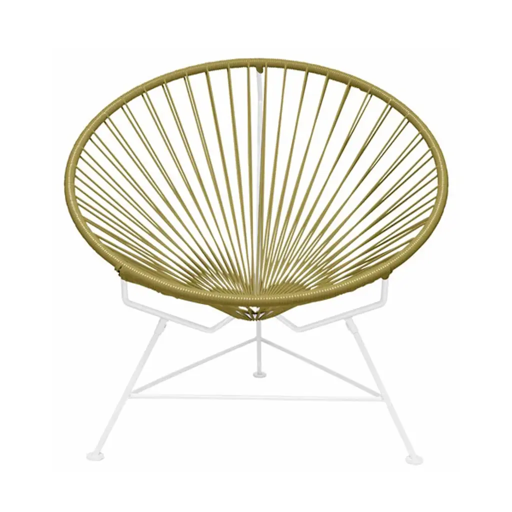 With a more laid back pear-shaped profile than our Innit Chair, the Acapulco Chair is comfortable without a cushion and made to last stylishly for years with its durable plated steel frame and custom leather woven cord.Available in light (blonde) or dark (brunette) leather cord and 5 frame finishes; the Acapulco Chair is breathable, stackable, easy to clean and perfect for both residential and commercial applications. Note: Chrome and copper frame finishes as well as leather cord are suitable for indoor use only, while our stainless version is perfect for your yacht or seaside home.