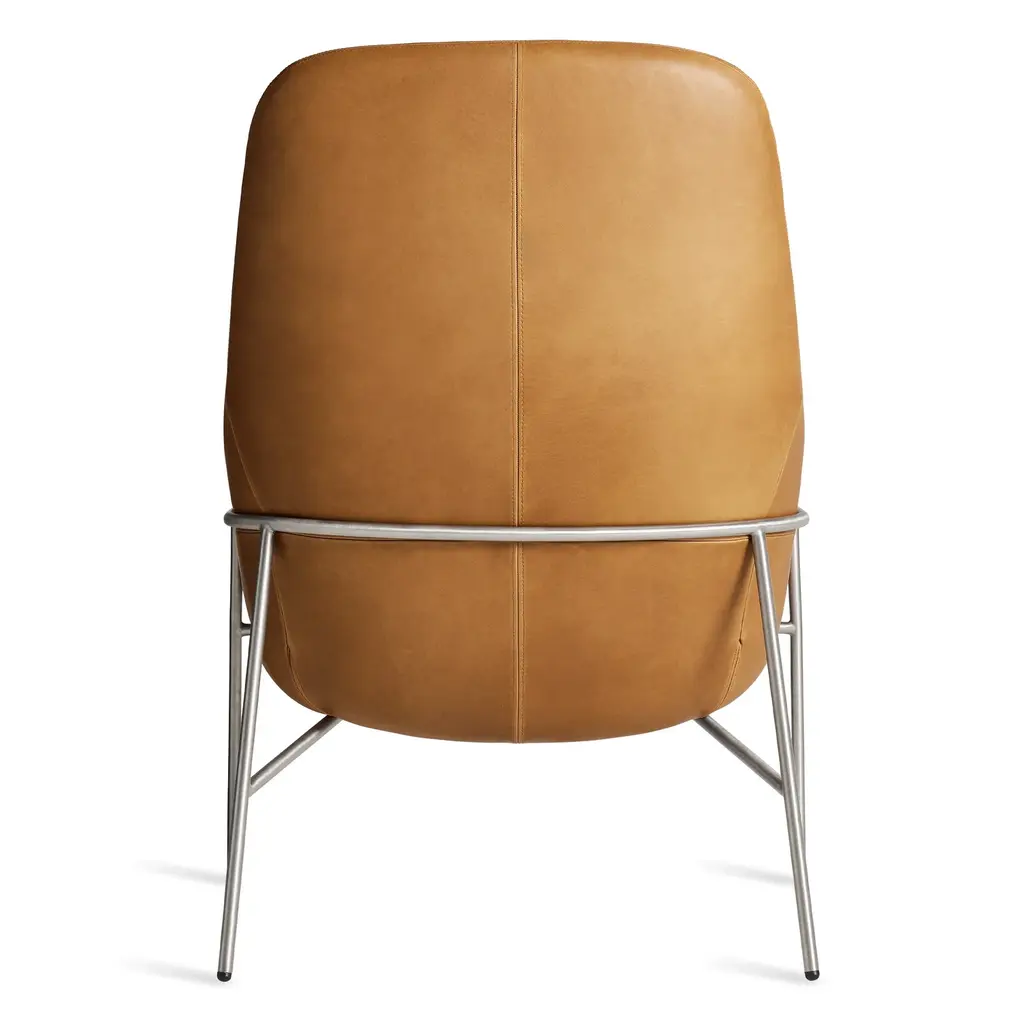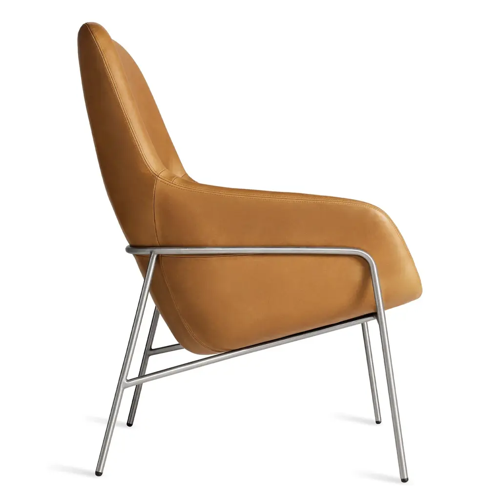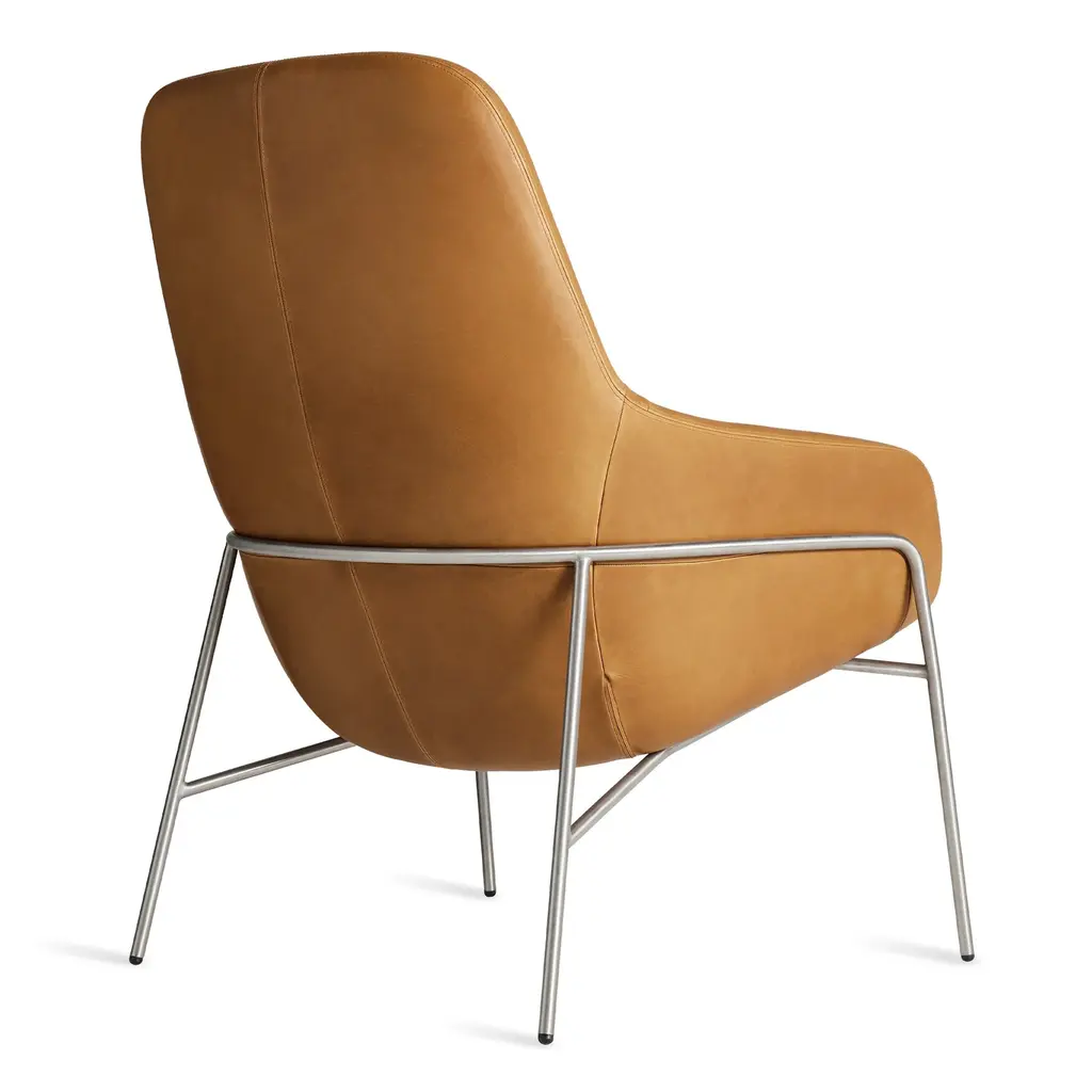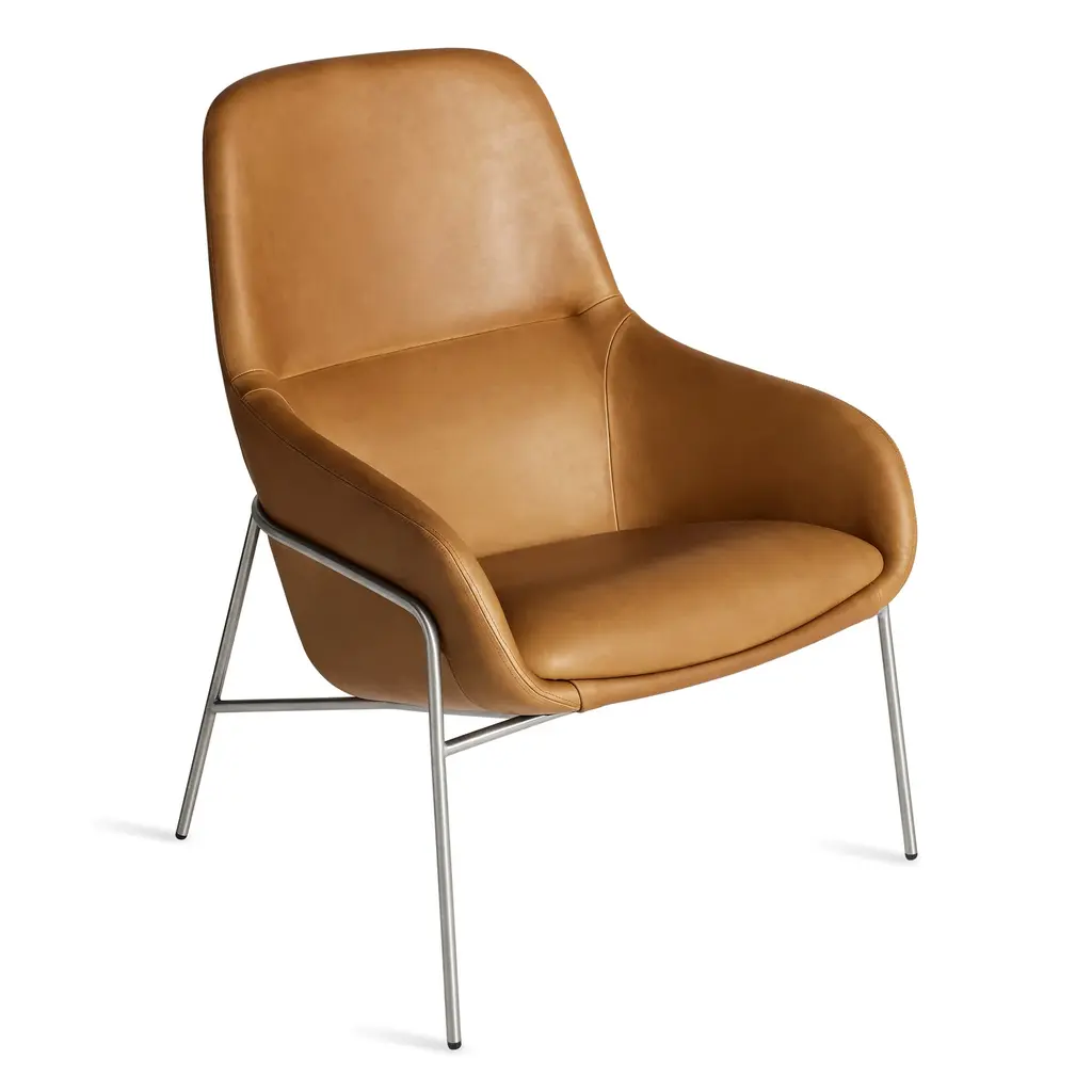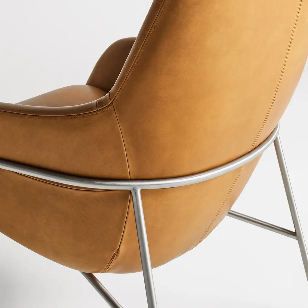 Acre is the kissing cousin of our much-loved Field Lounge Chair. Slightly smaller in stature, but equally elegant, its friendly curves keep you comfortably upright. A tucked seam back detail adds visual appeal and sets up additional lumbar support for long afternoons spent reading or dawdling. Comes with a stainless or blackened steel base that cradles the shell.