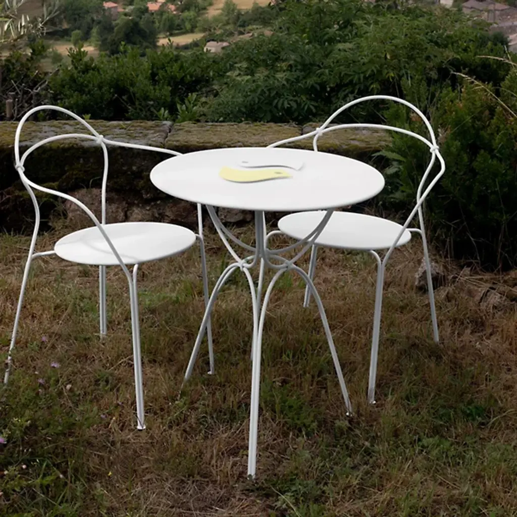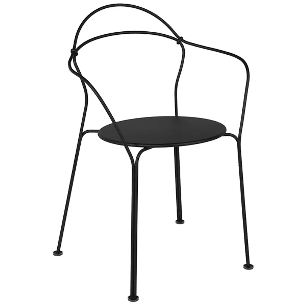 An elegant choice for minimalist outdoor settings. As its name suggests, the Airloop Armchair, Set of 2 by Fermob is mostly open air accentuated by strategic curves of hand-forged steel rod and a steel sheet seat. The economical use of materials results in a chair that is still wholly comfortable and supportive around a café table or outdoor lounge area. A polyester powder coat and rubber feet help to keep this delicate-looking armchair as durable as possible. Designed by Frederic Sofia.