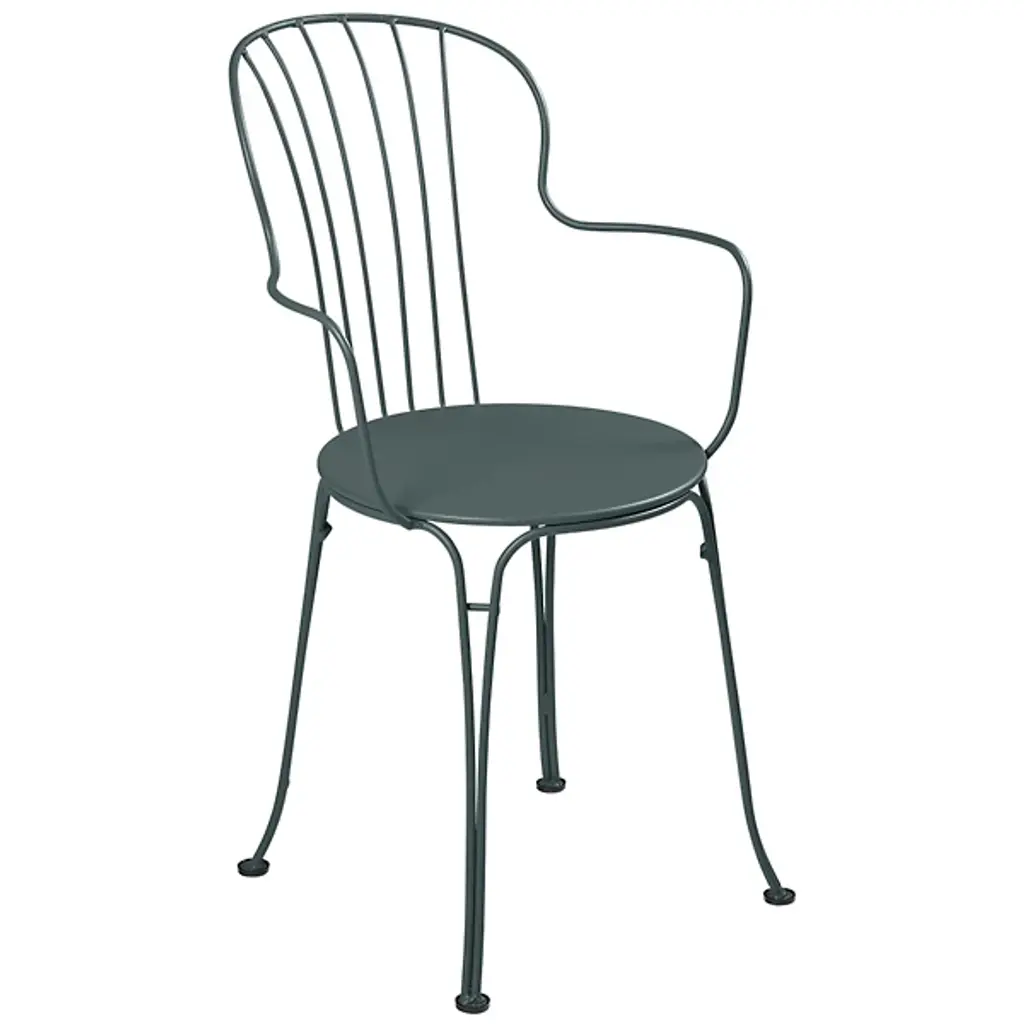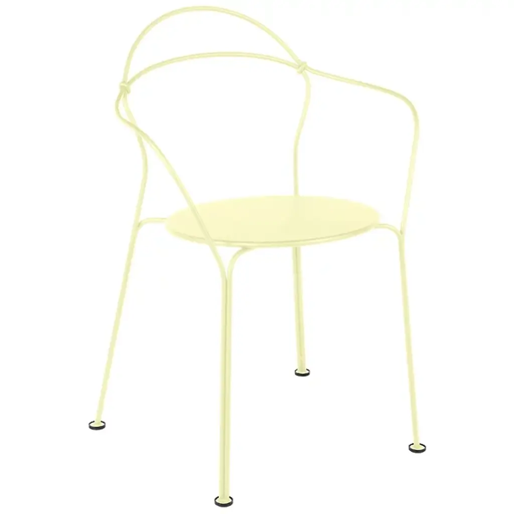 An elegant choice for minimalist outdoor settings. As its name suggests, the Airloop Armchair, Set of 2 by Fermob is mostly open air accentuated by strategic curves of hand-forged steel rod and a steel sheet seat. The economical use of materials results in a chair that is still wholly comfortable and supportive around a café table or outdoor lounge area. A polyester powder coat and rubber feet help to keep this delicate-looking armchair as durable as possible. Designed by Frederic Sofia.