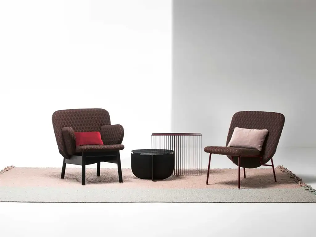 Ala is an easy chair with armrests and wood base.Ala is a collection of armchairs, sofas and poufs of various sizes that perfectly encapsulates the exacting creative and technical research that goes into every single one of La Cividina’s products. Ala’s originality lies in its visible frames made of metal and coloured or natural solid ash, which support and hold together the backrests, seats and armrests lightly and elegantly. The clean-cut lines embody the company’s ability to adopt solutions in which the master craftsmanship is highlighted by carefully considered combinations of elements. An overall sense of lightness is produced by giving the backrests, seats and armrests a basic form with limited thickness and thin edges. In addition, they are connected to each other using an ingenious technical approach that makes all fastening systems invisible. The curved, comfortable shape of the large backrest cradles the body. There is huge potential for customization because all of the padded parts can be combined to taste, using different fabrics, materials and colours to create playful solutions full of character. Thanks to the vast selection of sizes and heights, Ala is ideal for adding an elegant, intimate touch to seating in homes, hotels and offices.