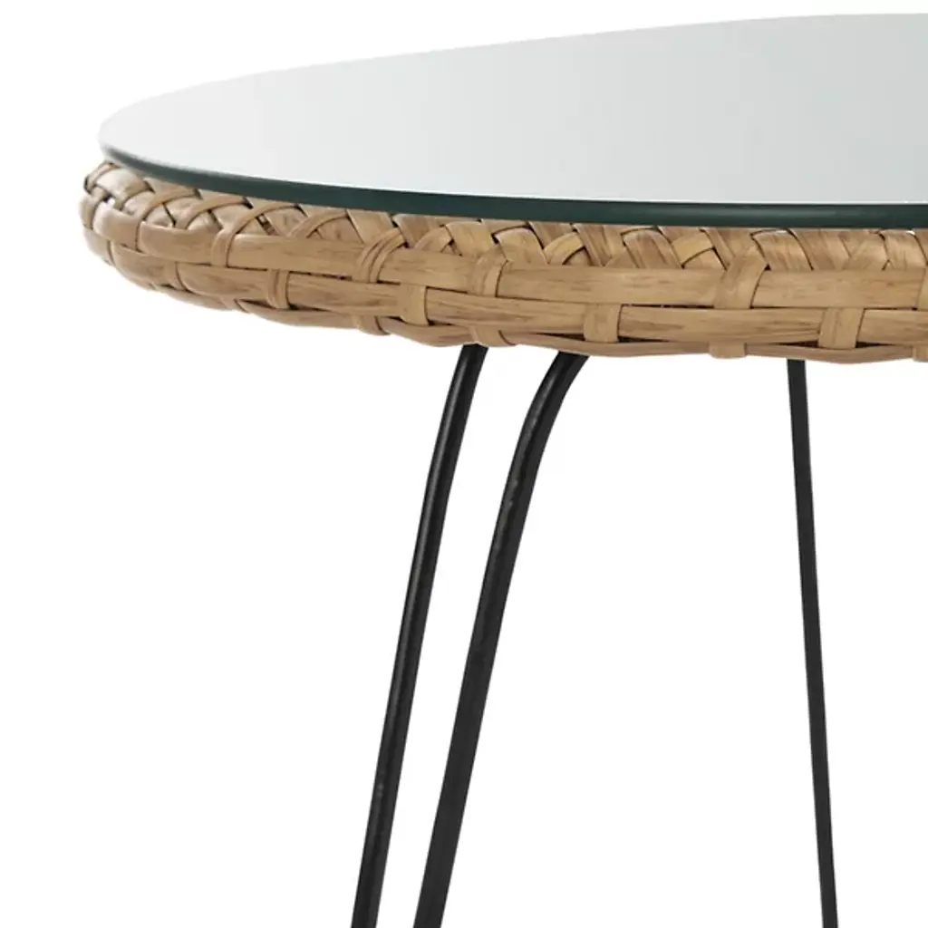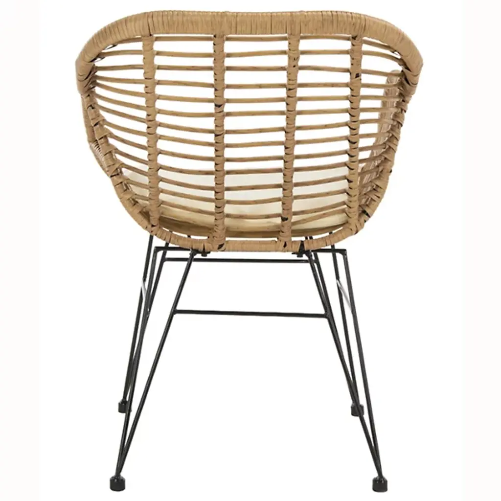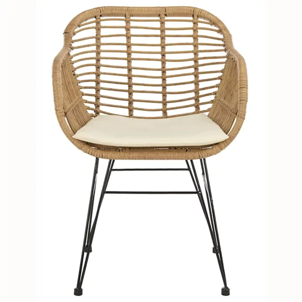 The Alemany Outdoor 3 Pcs Lounge Chair Set from Alder & Ore features a unique open-weave PE wicker pattern that provides optimal ventilation and comfort. Its steel hairpin legs add mid-century flair while ensuring stability on various outdoor surfaces. The accompanying side table echoes the chairs' design elements while providing a practical surface for snacks and drinks. Weather-resistant foam cushions wrapped in polyester fabric provide lasting comfort. This set combines retro inspiration with modern materials for enduring outdoor enjoyment.