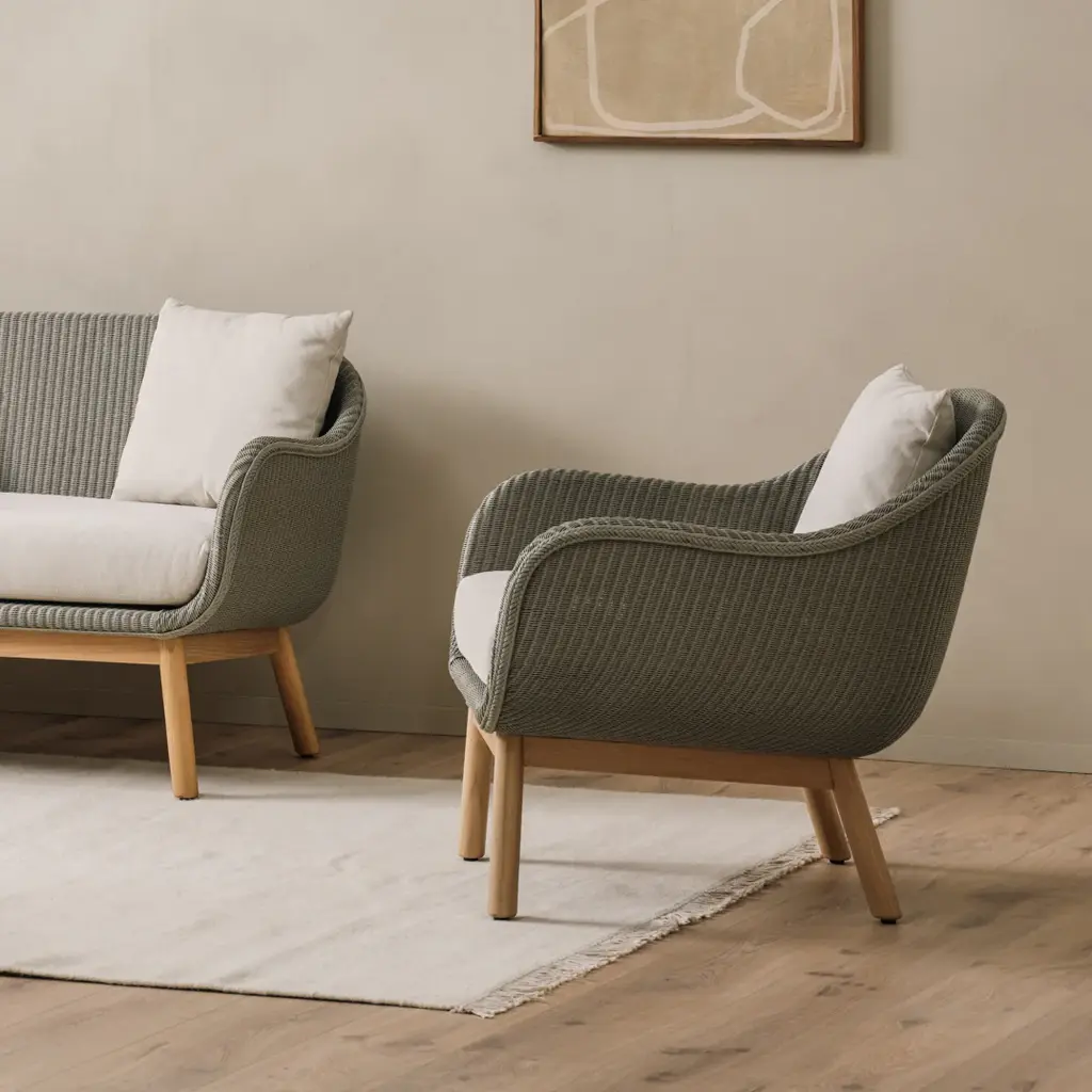 Rethink your indoor relaxation possibilities with the Vincent Sheppard Alex Lounge Chair. Tailor-made for relaxation, this stylish chair boasts a rich natural oak base and rattan frame. This beautiful indoor chair comes with a sunbrella canvas seat cushion and throw pillows, ensuring you stay comfortable. Make the most of your relaxation with the Vincent Sheppard Alex Lounge Chair. Highlights