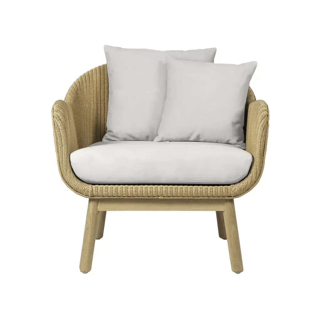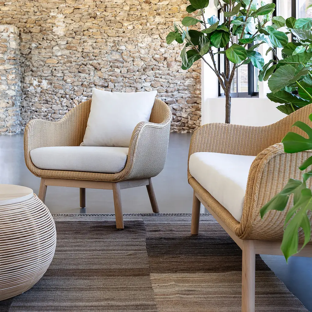 Rethink your indoor relaxation possibilities with the Vincent Sheppard Alex Lounge Chair. Tailor-made for relaxation, this stylish chair boasts a rich natural oak base and rattan frame. This beautiful indoor chair comes with a sunbrella canvas seat cushion and throw pillows, ensuring you stay comfortable. Make the most of your relaxation with the Vincent Sheppard Alex Lounge Chair. Highlights
