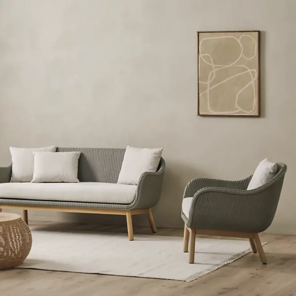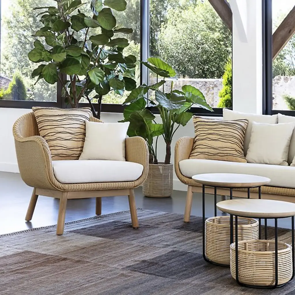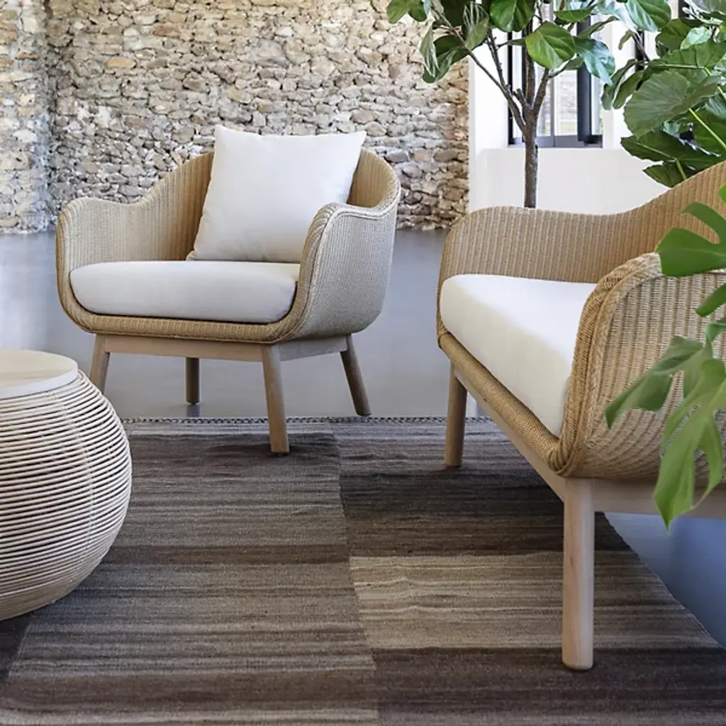 Change the look and feel of your space with the Vincent Sheppard Alex Lounge Chair. This stylish modern lounge chair is built with a strong rattan frame and features a natural oak base, working in tandem to create a breathable and sturdy furniture piece. This chair comes with Sunbrella canvas seat cushions and throw pillows that will keep you comfortable with every use. Use this chair to round out the look of your living room, bedroom or finished basement.