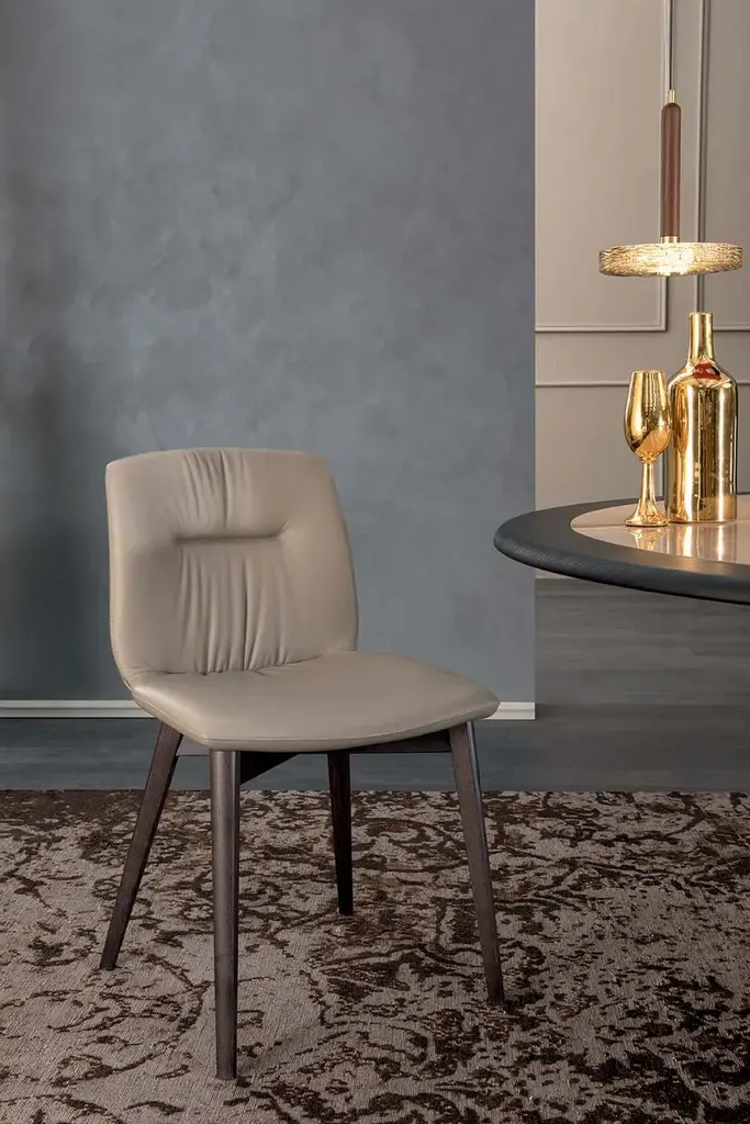 Alexia is a chair with a wooden structure, available in three types of wood: Canaletto walnut, dark oak head-treated and black ash. A comfortable padding for those who love absolute comfort. This chair is customizable thanks to the wide range of leathers and eco-leathers.