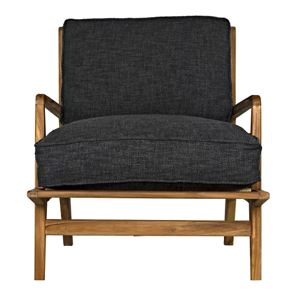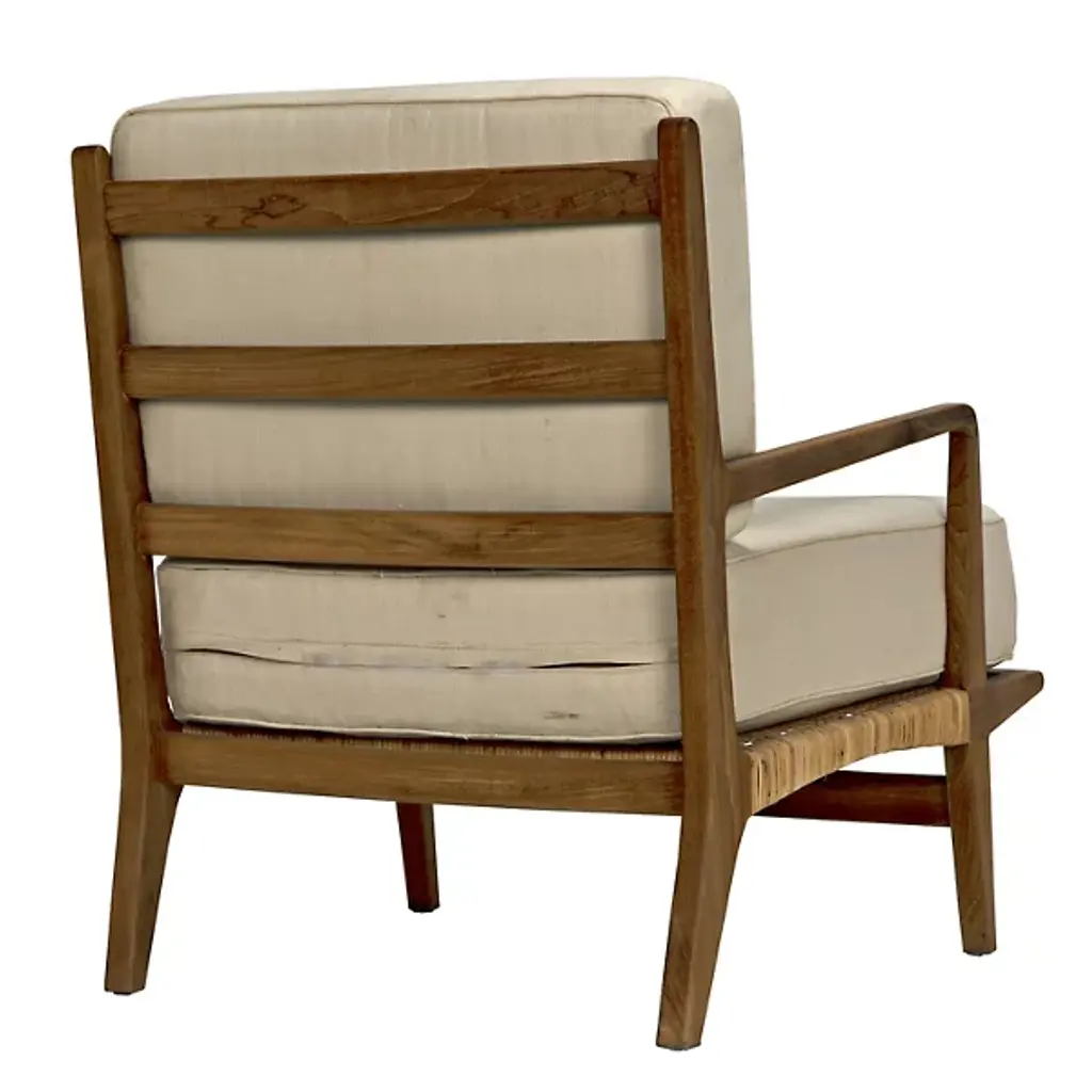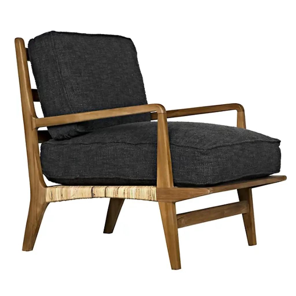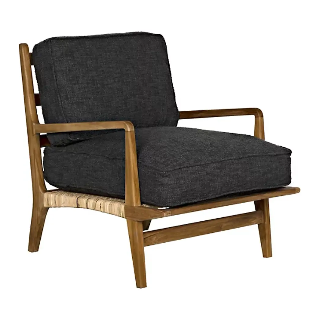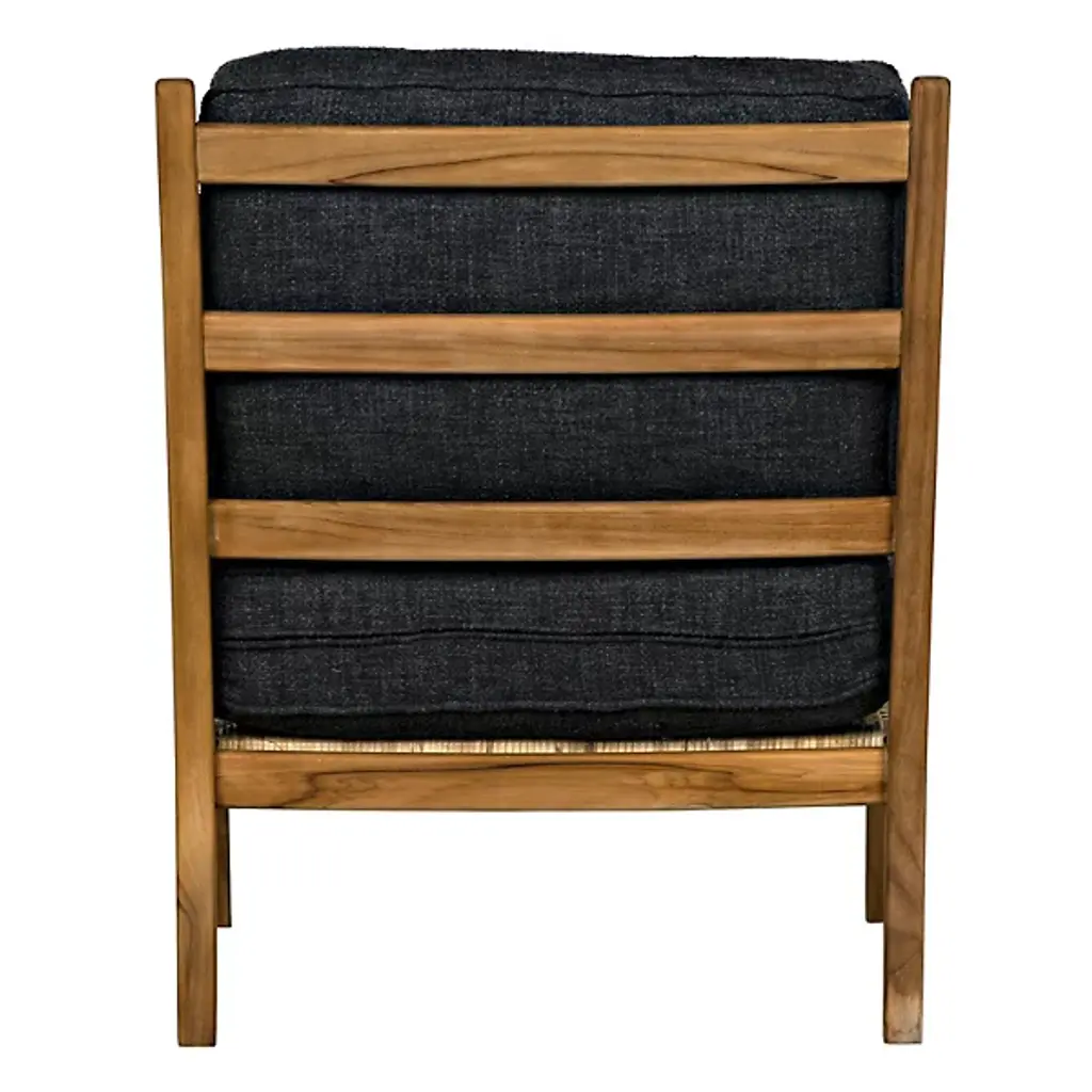 Give a stately retro-modern presence to interior living spaces with the Allister Chair from Noir. Made in Indonesia from smooth teak, it starts with an angular frame, using a weave across its lower section to support a plush foam and feather-fill seat and back cushion. The smooth wood and intricate grain contrast well with the soft cushions, creating both comfort and clever appeal in a single simple package with notes of California Modern and Contemporary notes.