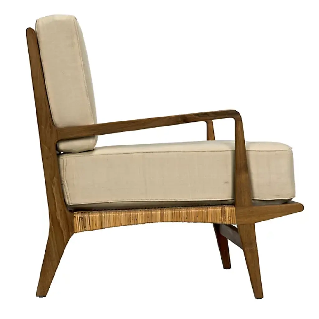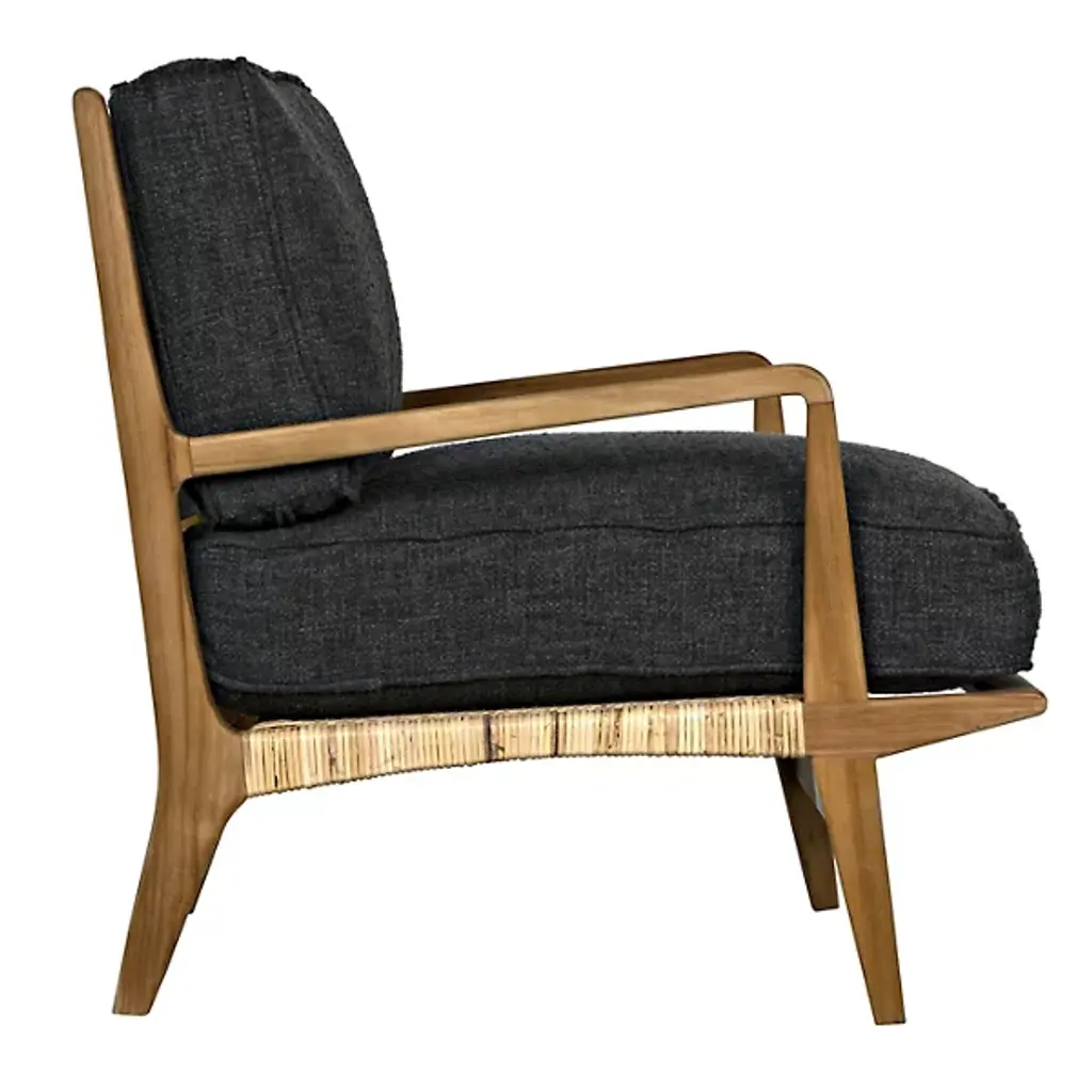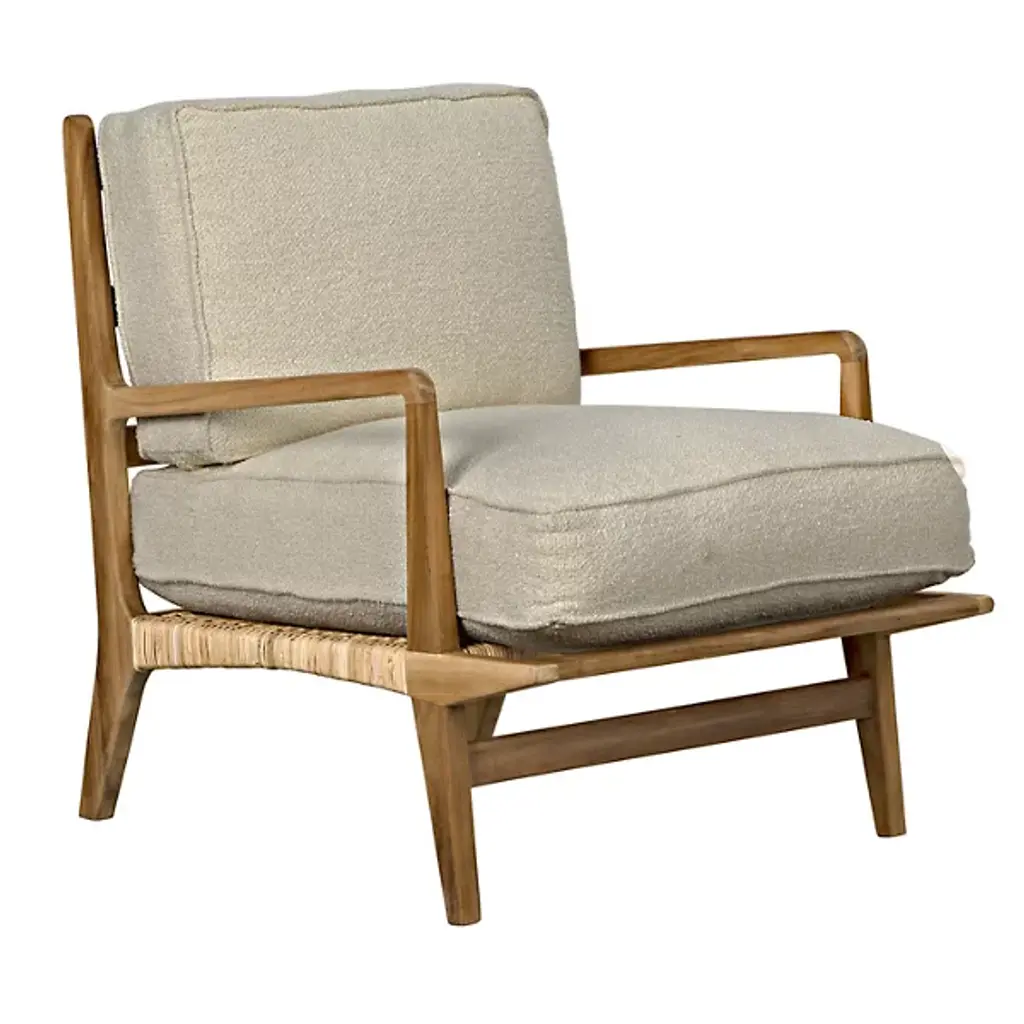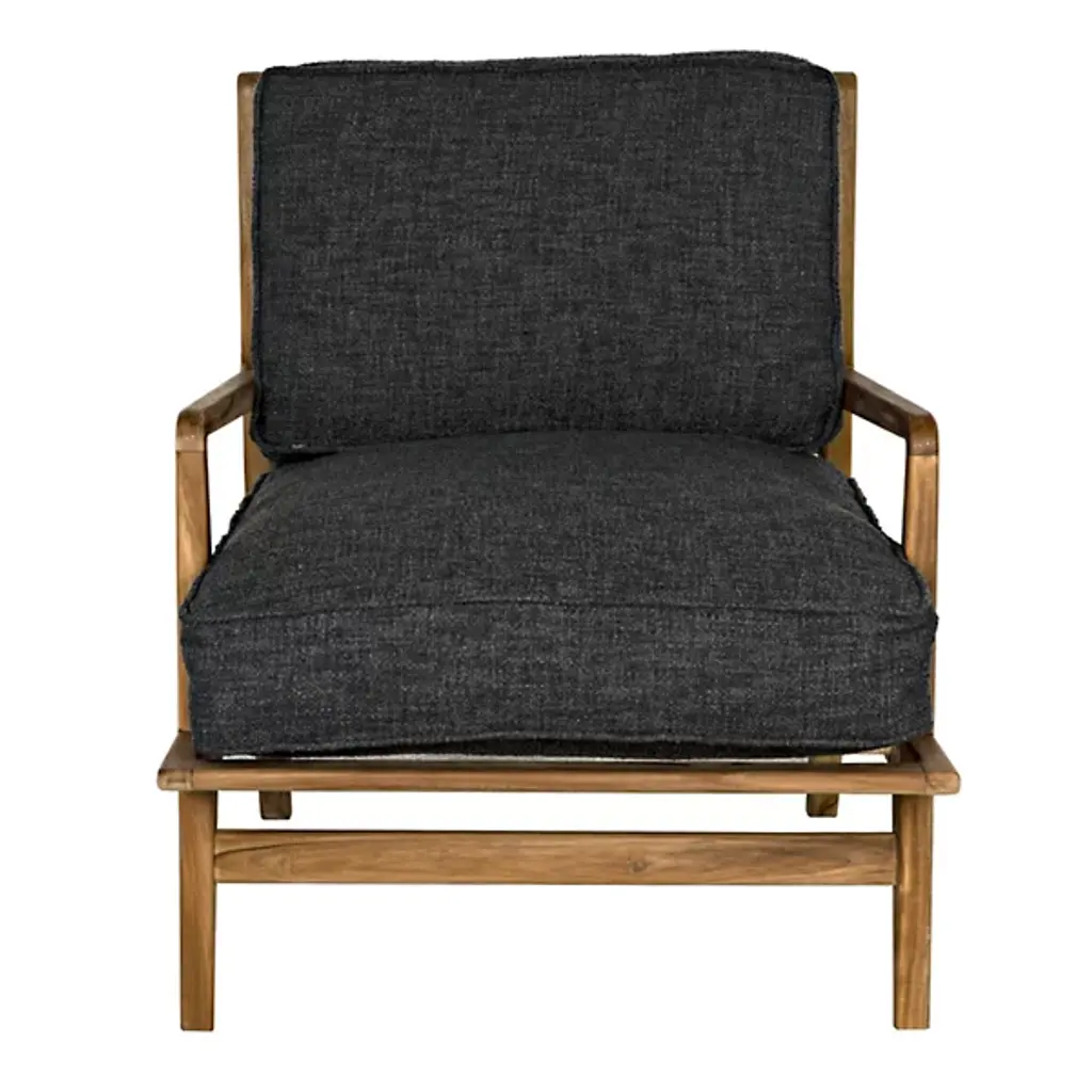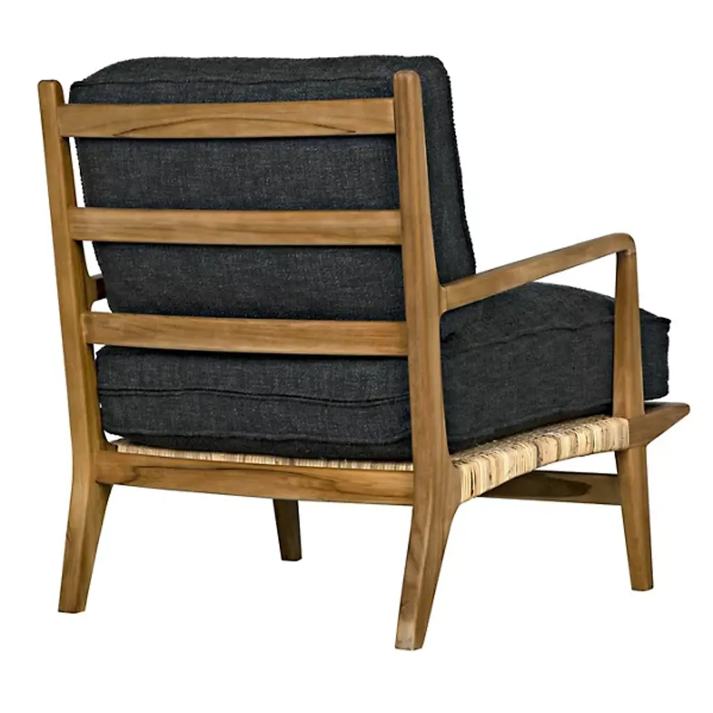 Give a stately retro-modern presence to interior living spaces with the Allister Chair from Noir. Made in Indonesia from smooth teak, it starts with an angular frame, using a weave across its lower section to support a plush foam and feather-fill seat and back cushion. The smooth wood and intricate grain contrast well with the soft cushions, creating both comfort and clever appeal in a single simple package with notes of California Modern and Contemporary notes.